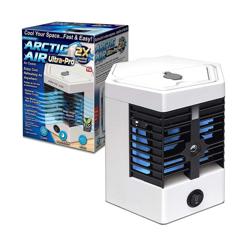 کولر آبی مدل Arctic Air Ultra pro یک کولر قابل حمل با خروجی باد محدود (پرتاب باد حدود 5 متر) با کاهش دمای متوسط (حدود 4 درجه خنک تر از محیط) است، که با پاوربانک های معمول و یا کابل USB تایپ C، قابل استفاده است (فاقد باتری داخلی بوده و باید به منبع برق (لپتاپ/پاوربانک/یو.اس.بی) وصل باشد).
