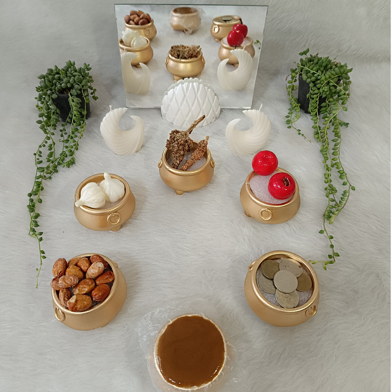 مجموعه ظروف هفت سین مدل دیگ چی که شامل 6 عدد ظرف هفت سین طرح دیگ میباشد. رنگ این محصولات تک رنگ است یعنی هر رنگی که انتخاب میکنید تمام 6 عدد ظرف ارسالی به همان رنگ ارسال میشود .