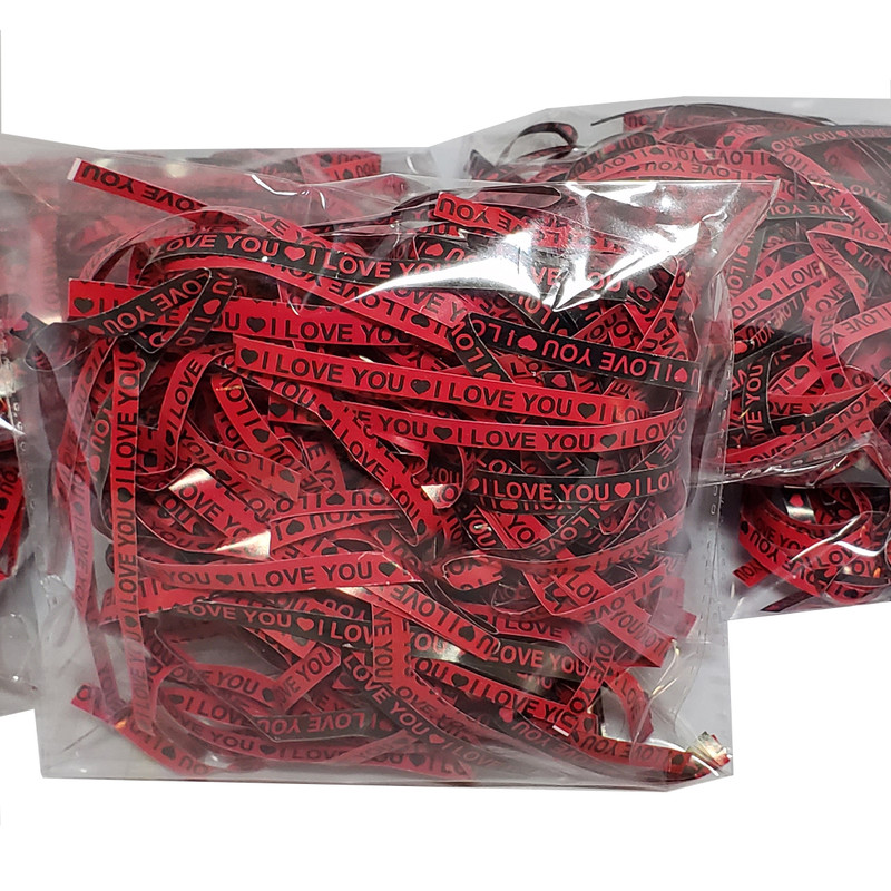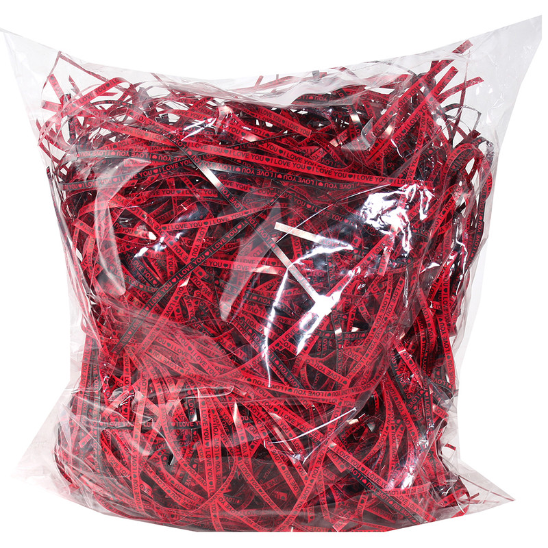 پوشال تزئینی کادو، یکی از لوازم تزئینی کادو است . پوشال ها در رنگ های متنوعی موجود هستند که رنگ آن متناسب با نوع جعبه کادویی یا ساک کادویی انتخاب می شود. برای این که هدیه شما جلوه زیبایی بگیرد از پوشال های تزئینی در اطراف هدیه استفاده می شود. درون ساک های کادویی را نیز می توانید با یک دسته پوشال (با توجه به سایز ساک) بپوشانید و همچنین می توانید روی پوشال را با گلبرگ های خشک و کاغذهای رنگی تزئین کنید. کف جعبه های کادویی نیز از دیگر جاهایی است که می توانید با پوشال های رنگی تزئین کنید. جنس این محصول گلاسه براق است و در تمام رشته ها کلمه I LOVE YOU تکرار شده و داراي رنگ بندي قرمز و مشكي در بسته های 10 گرمي ارایه میگردد .