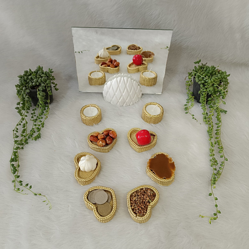 جا آینه ای یا استند آینه در تصاویر را میتوانید جداگانه از سایت دیجی کالا خریداری کنید و به زیبایی هفت سین خود بیفزایید