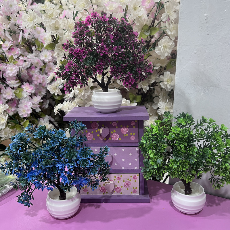 گلدان به همراه گل مصنوعی مدل درختچه زندگی مینیاتوری 02