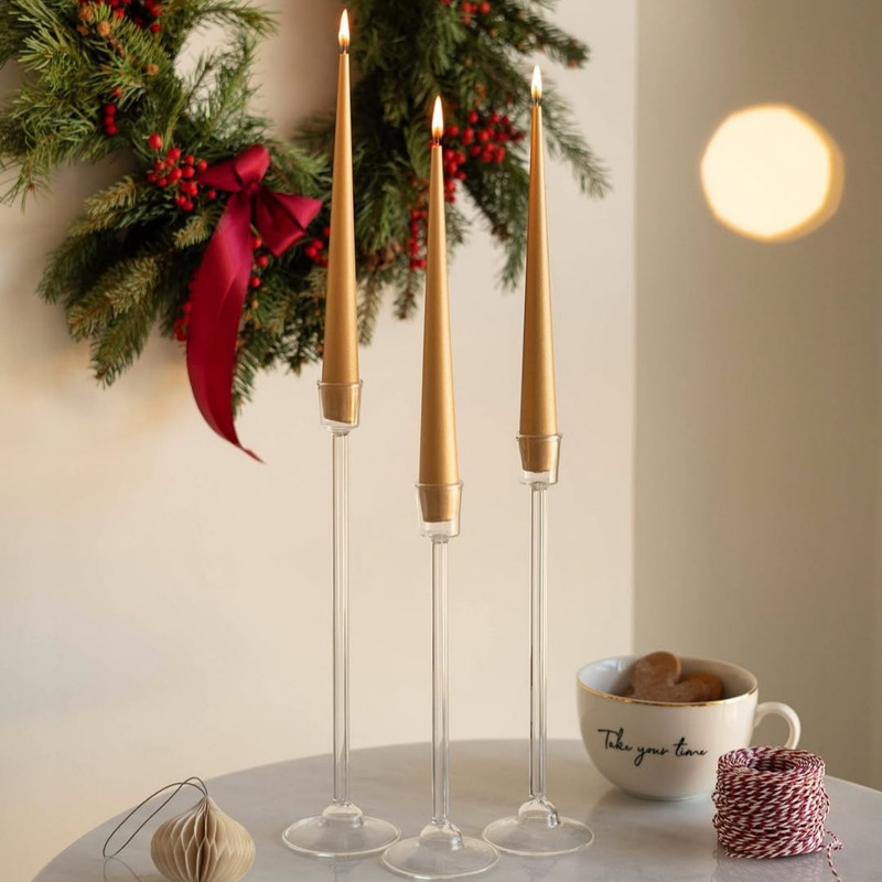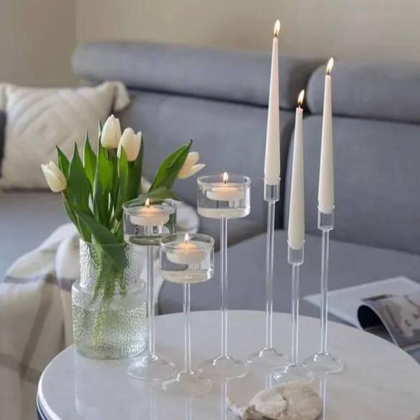 شمعدان قلمی از جنس پیرکس بوده و با کیفیت عالی زینت بخش منزل شما خواهد بود. میتوان از این ست در چیدمان سفره هفت سین و یا دیزاین مراسم و عروسی استفاده کرد