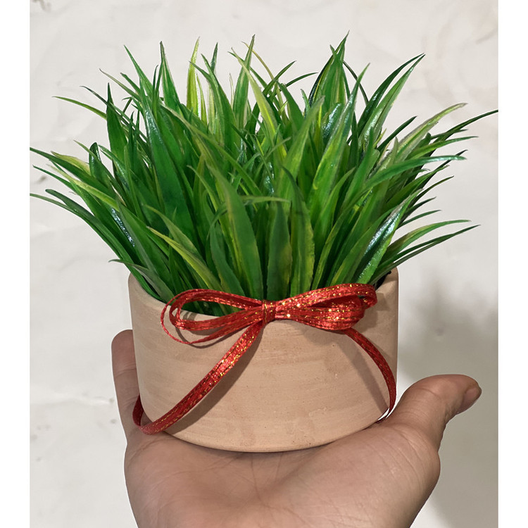 گلدان به همراه گل مصنوعی مدل سبزه سفالی