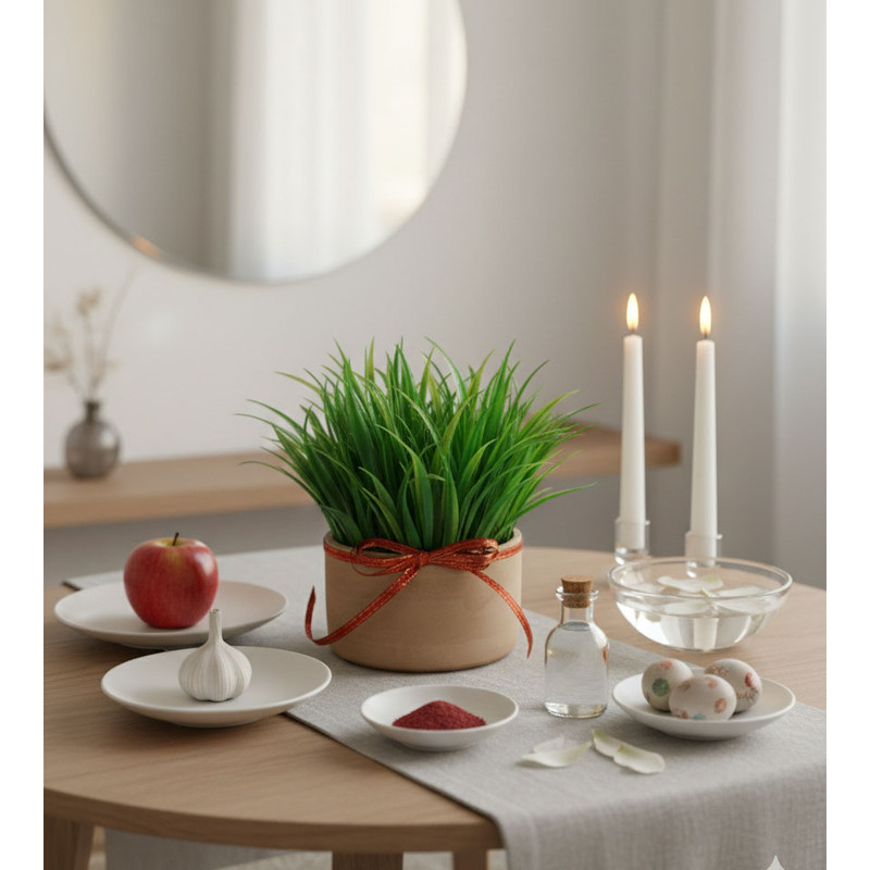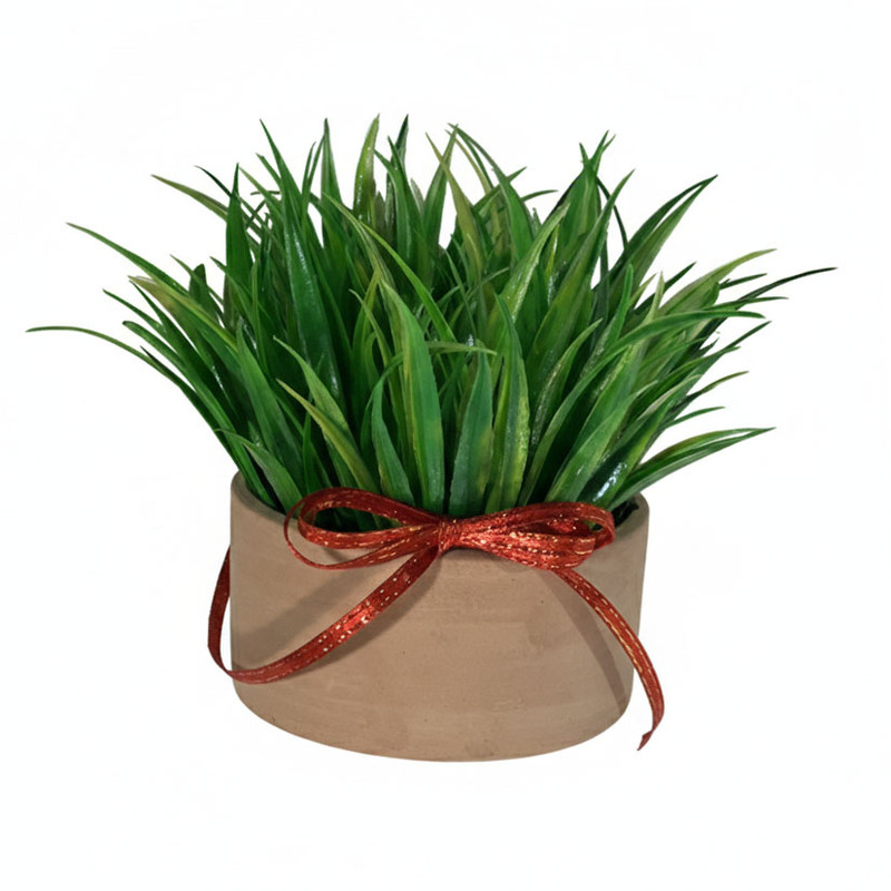 گلدان به همراه گل مصنوعی مدل سبزه سفالی