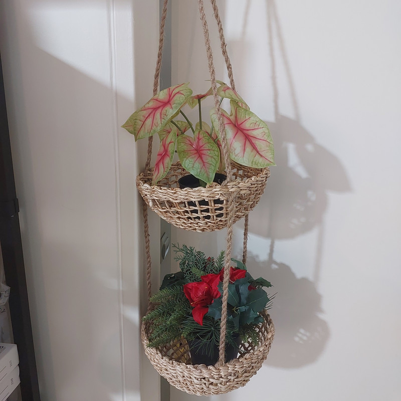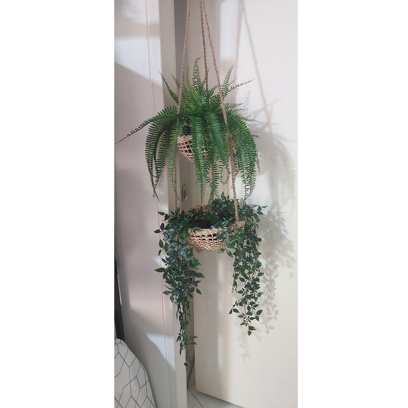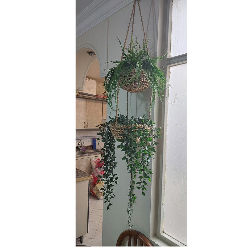 سایر توضیحات: این اویز گلدان از الیاف درخت موز و به دست زنان هندوستان ساخته وبافته شده . حداکثر تحمل بار 4 کیلو میباشد وبرای گل وگلدان مصنوعی مناسبتر هست ارتفاع اویز 107 سانتیمتر وقطر سبد 27 سانتیمتر میباشد