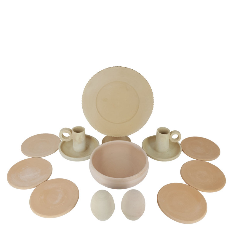 ست 12 تکه هفت سین سفالی خام مدل گرد توسط دست سفالگران ماهر همدان ساخته شده است. این ست زیبا در کوره پخته شده و برای انواع کارهای هنری از قبیل نقطه کوبی و میناکاری و.... مناسب میباشد