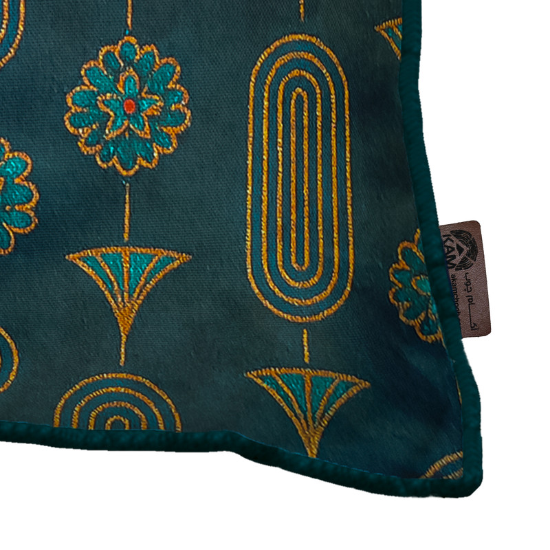 کاور کوسن نقش آکام چوب طرح آپادانا، با طراحی الهامگرفته از معماری اصیل ایرانی، انتخابی خاص برای سلیقههاییست که زیبایی و اصالت را میپسندند. این کاور از پارچهی مخمل باکیفیت دوخته شده و دارای طرحی چشمنواز از گلهای هندسی و قوسهای بادبزنی به رنگهای طلایی و فیروزهایست که در هر دو سمت کاور تکرار شده است. مغزیدوزی ظریف دور تا دور، دوخت تمیز و چاپ ماندگار، جلوهای خاص به این محصول داده است. این کاور بهتنهایی (بدون بالشتک داخلی) عرضه میشود و برای ست شدن با سایر محصولات طرح آپادانا از جمله کوسن کامل، میز جلو مبلی، میز عسلی و پاف نیمکتی بسیار مناسب است.