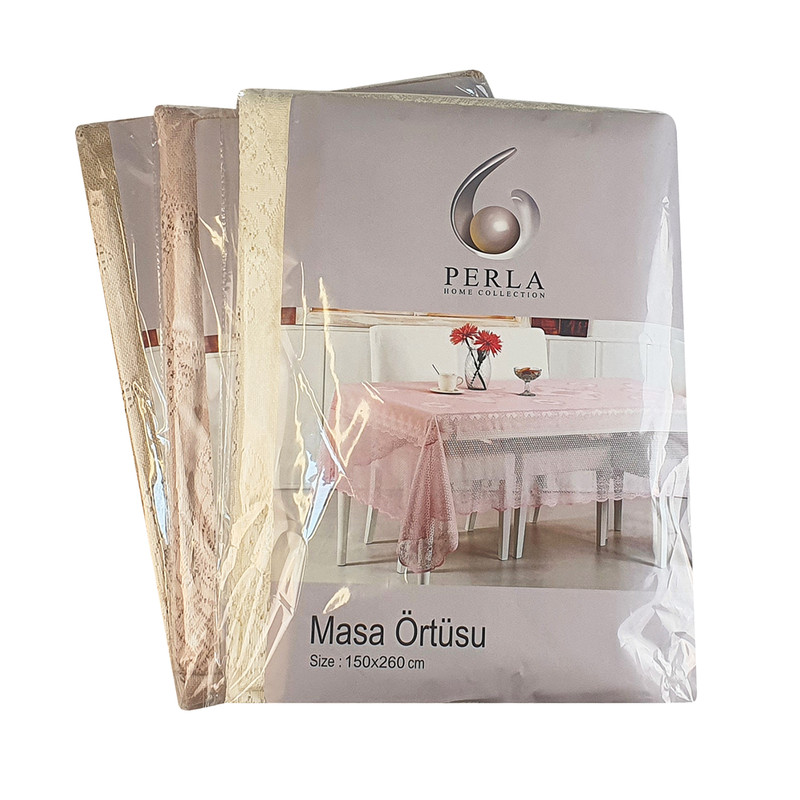 رومیزی پرلا از جنس پلی استر و سایز 260×150 سانتیمتر در سه رنگ تولید شده و برای میزهای 8 نفره مناسب می باشد. رومیزی پرلا علاوه بر زیبایی از دوام بالایی برخوردار است و قابل شستشو با دست و ماشین لباسشویی است.