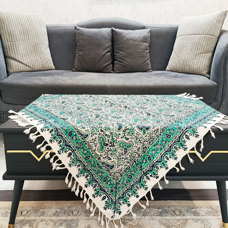 سفرهٔ قلمکار مدل سلسلهای یک محصول زیبا و اصیل ایرانی است که با نقشهای ریز و تکرارشوندهٔ بتهجقه و طرحهای سنتی گلوبوته، جلوهای چشمنواز و هماهنگ ایجاد میکند. ترکیب رنگهای سبز، مشکی و کرم در کنار چاپ دستی ظریف، این سفره را به اثری هنری تبدیل کرده که میتواند فضای خانه، میز پذیرایی یا مهمانیهای سنتی را گرمتر و دلنشینتر کند. حاشیههای پهن و منظم با نقوش سنتی، کادری شکیل برای طرح مرکزی میسازند و ریشههای دستبافت در اطراف، حس اصالت و کار دست را تقویت میکنند. پارچهٔ این سفره معمولاً از کتان یا پنبه طبیعی تهیه میشود و علاوه بر زیبایی، دوام بالایی دارد. سبک بودن، شستوشوی آسان و امکان استفاده بهعنوان رومیزی، پرده تزئینی یا حتی زیرانداز سنتی از دیگر ویژگیهای جذاب این محصول است. این سفرهٔ قلمکار انتخابی مناسب برای کسانی است که به دکور ایرانی، کارهای دستی و زیبایی شناسی سنتی اهمیت میدهند.