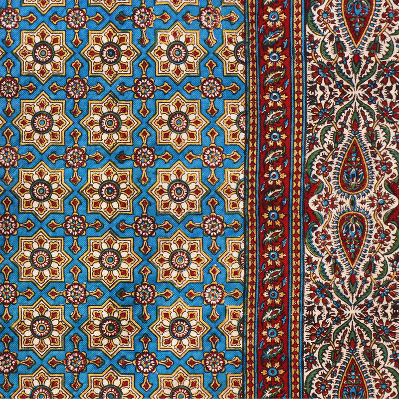 مشخصات فیزیکی: این سفره با ابعاد ۱۰۰×۱۰۰ سانتیمتر و فرم مربعی، گزینهای مناسب برای استفاده روی میزها یا بهعنوان رومیزی تزئینی است. پارچهی نخ پنبهای با چاپ دستی و رنگهای گیاهی، در کنار ریشهدوزی ظریف در لبهها، اصالت و کیفیت این محصول را دوچندان کرده است. طراحی پرجزئیات در زمینهی کرم با ترکیب رنگهای گرم، جلوهای سنتی و چشمنواز به دکور منزل یا محل کار شما میبخشد. نوع هنر: این محصول حاصل هنر اصیل قلمکاری است؛ شیوهای که در آن، نقوش سنتی بهوسیله قالبهای چوبی بر روی پارچه چاپ میشوند. رنگها از مواد طبیعی استخراج شدهاند تا علاوهبر زیبایی، سلامت و ماندگاری نیز داشته باشند. شرایط نگهداری: برای حفظ کیفیت پارچه و ماندگاری رنگها، از شستوشو با ماشین لباسشویی خودداری شود. بهتر است آن را با دست و با آب سرد شستوشو داده و از شویندههای ملایم استفاده شود. خشککردن زیر نور مستقیم خورشید توصیه نمیشود.
