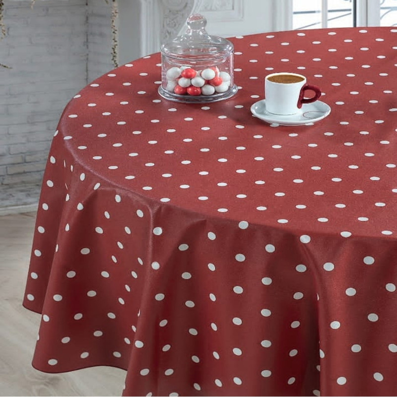 رومیزی گرد با قطر 140 سانتی متر محصولی از شرکت معتبر رزین تاژ ، مناسب برای میز های گرد دو تا شش نفره که از جنس پنبه ای بوده و روی آن را لایه ای از جنس رزین پوشانده است. این نوع پارچه نسوز و ضد لک می باشد.