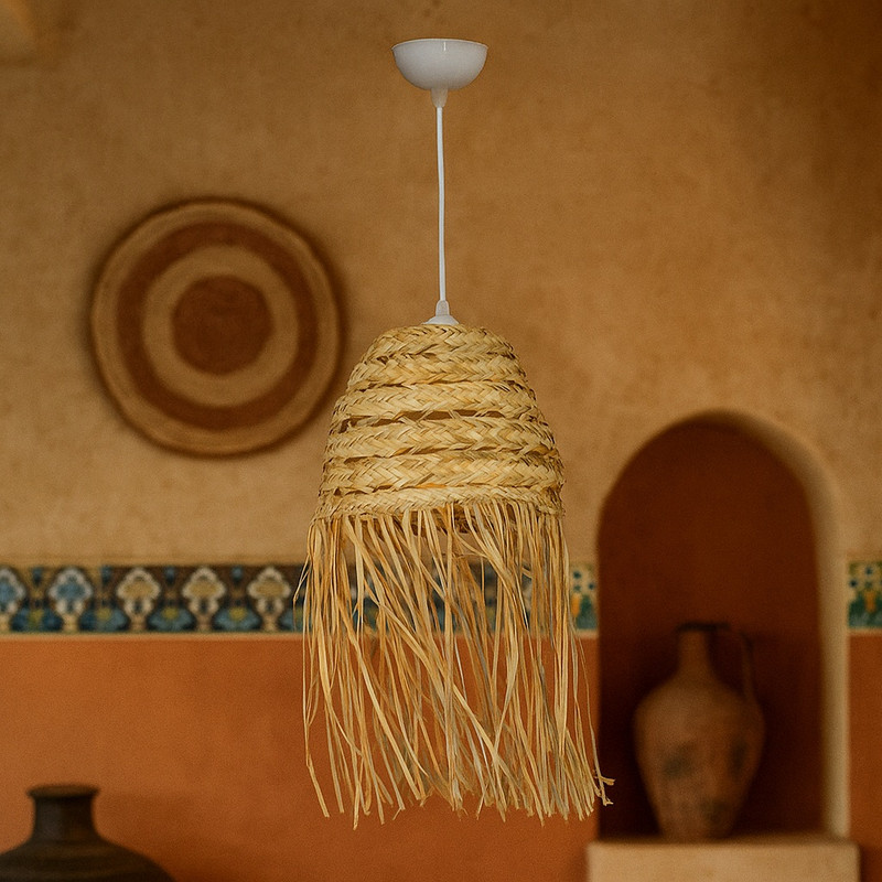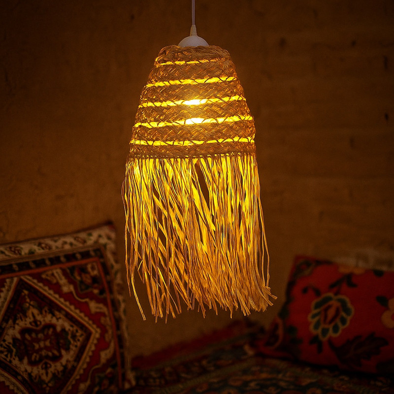 لوستر حصیری «شاهان تک» با الهام از هنر جنوب ایران و استفاده از الیاف طبیعی، فضایی گرم و صمیمی به خانه یا محل کار شما میبخشد. این لوستر با قطر 30سانتیمتر، انتخابی ایدهآل برای فضاهای کوچک و متوسط مانند نشیمن، اتاق خواب، کافیشاپ، رستوران و فضاهای سنتی یا مینیمال است.