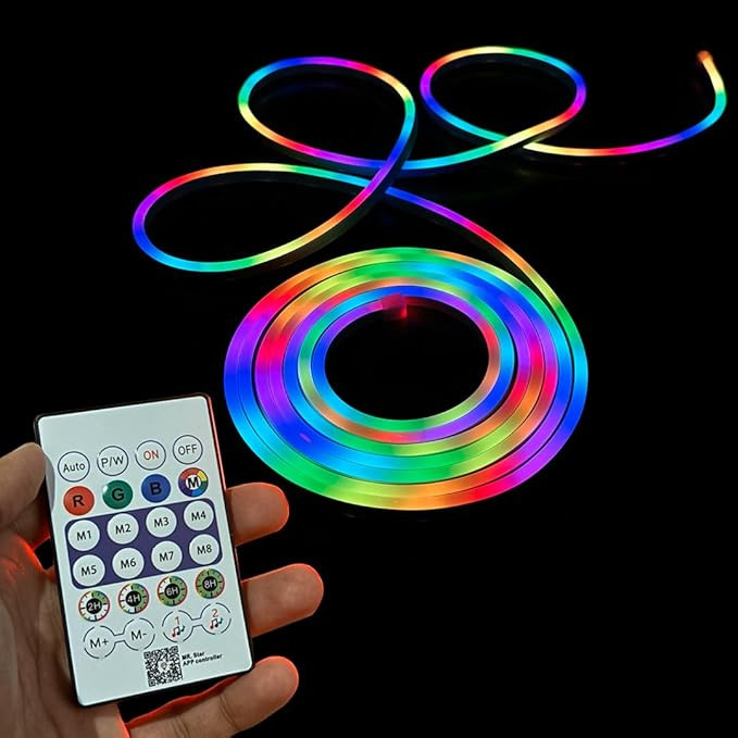 ریسه نئون فلکسی مولتی کالر برنامه پذیر آیسی دار حلقه ۵ متری جنس درجه یک، شاهکاری در نورپردازی مدرن است که توانسته نگاهها را به خود جلب کند. این ریسه با قابلیت برنامهریزی رنگها و افکتهای نورانی جذاب، هر فضایی را به یک صحنه هنری تبدیل میکند.