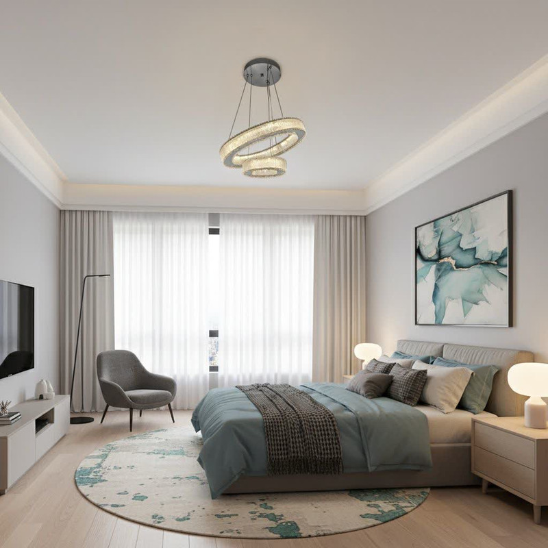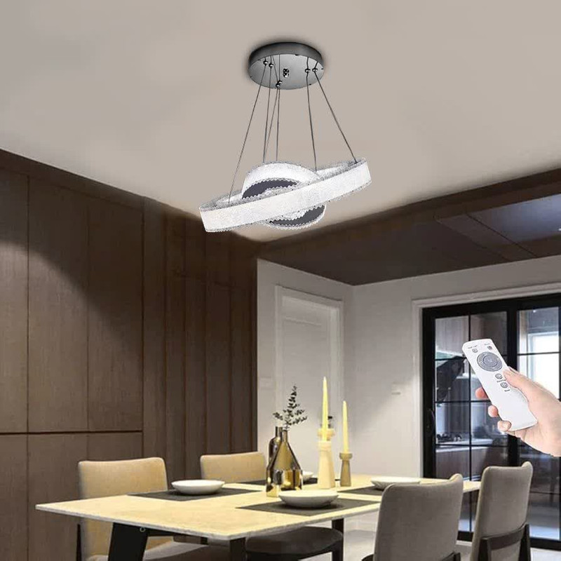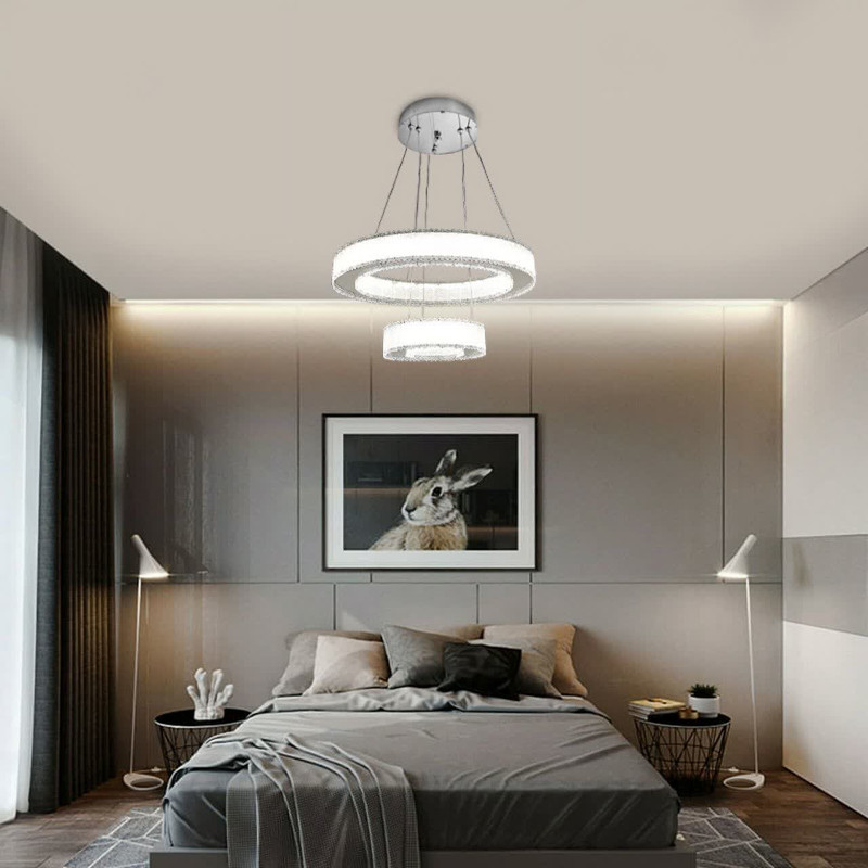 لوستر مدرن دو حلقه با ابعاد 40سانت و حلقه کوچک 20 سانت ،طراحی شیک انتخابی ایدهآل برای فضاهای مدرن و لوکس است این لوستر با دوحلقه با کیفیت بالا نوردهی مناسبی را ارائه میدهد که به راحتی فضای اتاق و یا آشپزخانه را روشن میکند چهار حالت نورردهی مختلف از جمله شب خواب امکان تنظیم نور برای هر موقعیت و فضایی را فراهم میسازد ارتفاع لوستر تا ۸۰ سانتیمتر قابل تنظیم بودن و به شما اجازه میدهد تا بر اساس ارتفاع سقف و نیاز خود آن تنظیم کنید لوستر مدل مدرن دوحلقه با وزن 1/5 کیلوگرم و طراحی خاص خود به عنوان یک منبع نور کارآمد و هم به عنوان یک عنصر دکوراتیو زیبا فضای زندگی شما را به سطح جدیدی از زیبایی و کارایی میرساندو همچنین برای ست کردن کنترل با لوستر، ابتدا بعد از نصب کامل لوستر ، لوستر را از کلید روی دیوار خاموش کنید سپس دکمه ی ست آپ روی کنترل را فشار دهید و نگه دارید مجدد لوستر را از کلید روی دیوار روشن کنید دست خود را از روی دکمه ست آپ بردارید حالا لوستر چشمک میزند و ست میشود