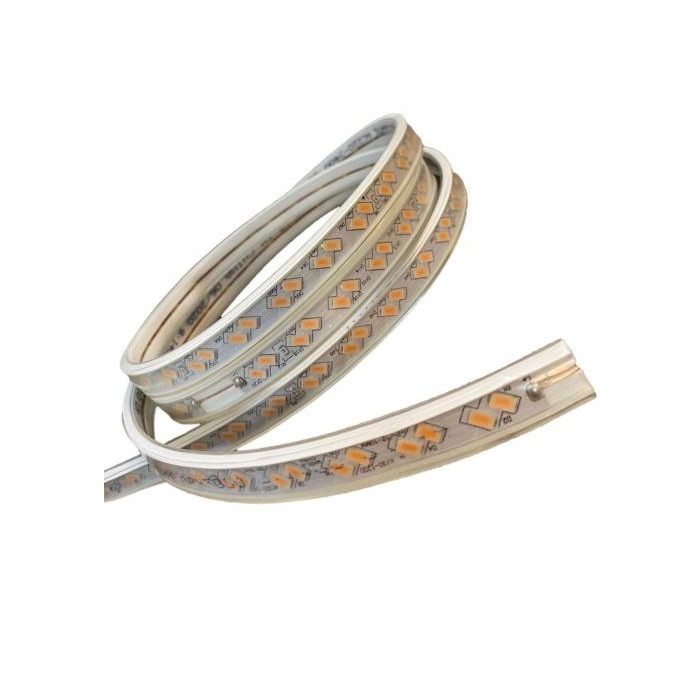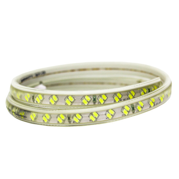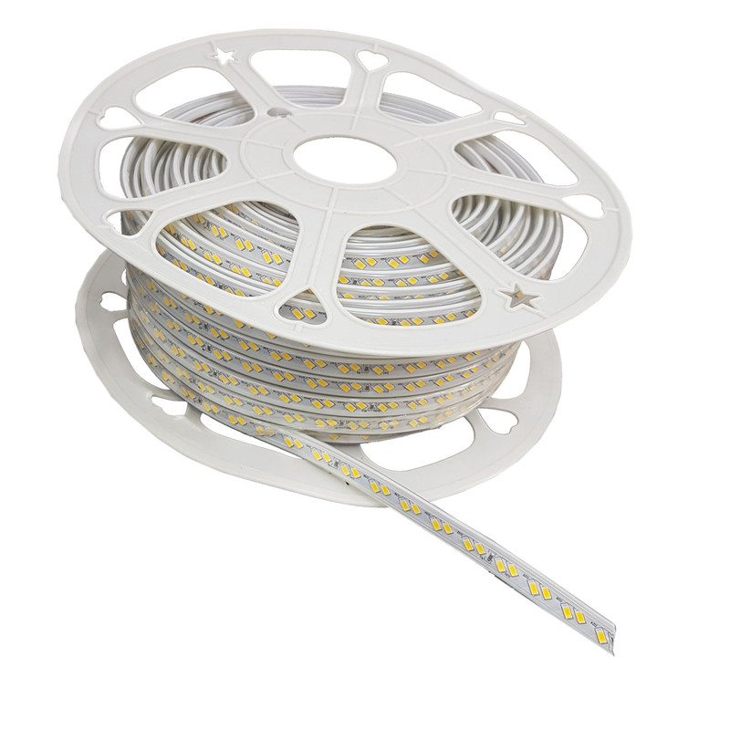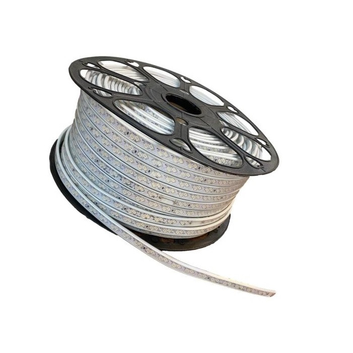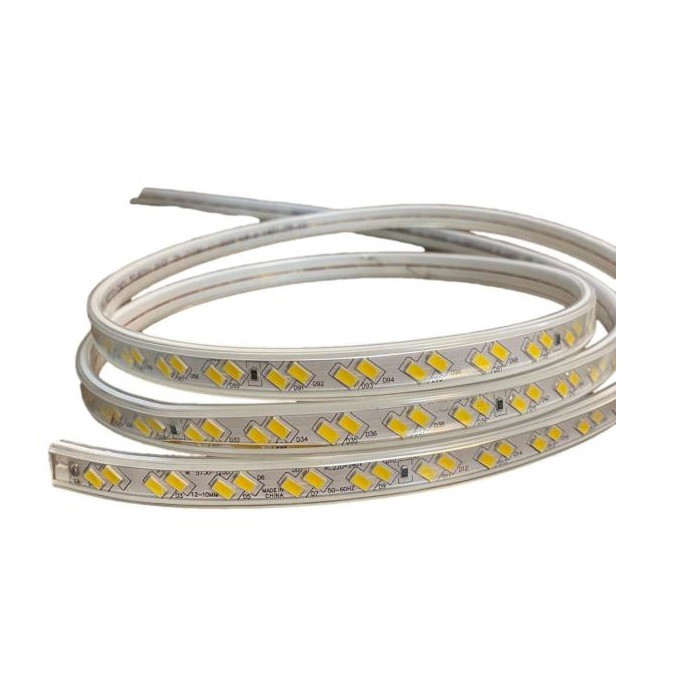 ریسه شلنگی ال ای دی دو لاین کد 5730 با برق مستقیم شهر روشن می شود این محصول داری چیپ های با کیفیت و با تراکم 120 ال ای دی در هر متر می باشد. محافظ پلاستیکی که به شکل محدب بر روی چیپ ها قرار دارد ، بعنوان لنز ، پرتاب نور محصول را تقویت می نماید. به همین دلیل این محصول دارای نور زیاد و خیره کننده ای می باشد. از دیگر ویژگی این ریسه ها میتوان به ضد آب بودن محصول و کوتاه کردن آن در هر متر اشاره نمود. از این نوع ریسه ها برای روشنایی ، نورپردازی و اجرای نور مخفی در راویز های سقفی و کناف، دور تابلوها، دور پنجره ها، دور کتیبه ها، روشنایی پله ها، حواشی جداول، ساخت المان های نوری شهری و آذین بندی محیط های داخلی و خارجی استفاده می شود. ( آفتابی = نور زرد = 3000 کلوین ، مهتابی = نور سفید = 6500 کلوین )