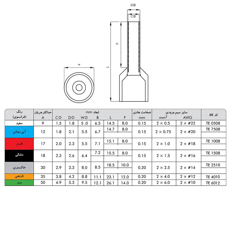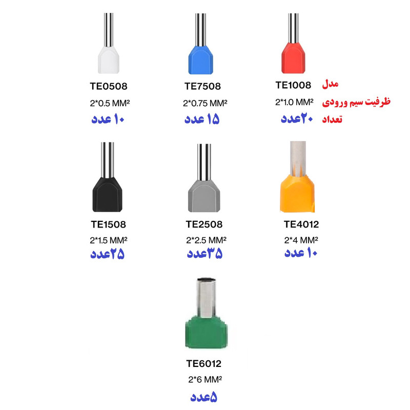 سیم های افشان به دلیل داشتن رشته های مسی فراوان عمدتاٌ در حین نصب پراکنده شده و خطر برق گرفتگی را افزایش میدهند. به همین دلیل از سرسیم یا وایرشو استفاده می شود تا علاوه بر زیبایی کار، امنیت را نیز فراهم آورد. وایرشوها از دو نوع وایرشو تکی و وایرشو دوبل هستند. وایرشوهای دوبل روکش دار دارای دو ورودی سیم به صورت همزمان است .عایق وایرشو ها به صورت قیفی شکل طراحی شده تا سیم به سهولت در آن قرار گیرد. اندازه های مختلف وایرشو جهت انطباق با انواع ترمینال ها و سیم ها است. طول قسمت هادی وایرشو ها بین 8 تا 12 میلی متر است به طوری که در نام وایرشو ها دو رقم اول سمت چپ ظرفیت سیم ورودی به آن با ضریب ده و دو رقم بعدی طول قسمت فلزی وایرشو به میلی متر است .برای مثال در وایرشو مدل TE4010 عدد 40 نشانگر ظرفیت 2 عدد سیم نمره 4 میلی متر مربع بوده و طول هادی وایرشو نیز 10 میلی متر است. در این مجموعه وایرشو هایی با سطح مقطع سیم های ورودی در اندازه های 0.5 ( 10 عدد) و 0.75 ( 15 عدد) و 1 ( 20 عدد) و 1.5 ( 25 عدد) و 2.5 ( 35 عدد) و 4 ( 10 عدد) و 6 میلی متر مربع ( 5 عدد) است. سرسیم های برند ده ده الکتریک دارای کیفیت بالایی در قسمت هادی به دلیل ضخامت استاندارد و همچنین قسمت پلاستیکی به دلیل مقاومت در برابر شکستگی و مقاومت عایقی هستند.جنس قسمت هادی از مس با خلوص 99/95 % می باشد که روی آن توسط قلع آبکاری شده است. این روکش قلع از اکسیده شدن مس در مجاورت با هوا و رطوبت جلوگیری می کند. قسمت پلاستیکی نیز از PVC است که خاصیت ضد اشتعال در مقابل گرمای زیاد را نیز دارد. برای اتصال سیم و کابل ها به یکدگیر و یا به سایر تجهیزات الکتریکی توسط وایرشو، ابتدا باید مقداری از روپوش عایق سیم را جدا کرده تا به اصطلاح سیم لخت شود. سپس سیم ها به داخل وایرشو وارد شوند. در نهایت این سرسیم با ابزار مخصوص پرس می شود تا اتصال مطمئن بین وایرشو و سیم برقرار شود.