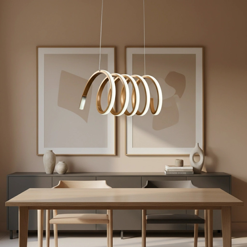 لوستر آویز مدرن نورازما فنر4 پر دوطرف نور ، با بدنه ای فلزی ، لامپ های SMD و کریستال ها جزو لوستر های مدرن به شمار میرود ، این محصول شامل یک حلقه ی منحنی است ؛ در رنگ های متفاوت (طلایی، مشکی ، طوسی و سفید) میباشد و قابلیت تغییر در طول سیم ها به شما این امکان را میدهد که ارتفاع لوستر را تغییر دهید.