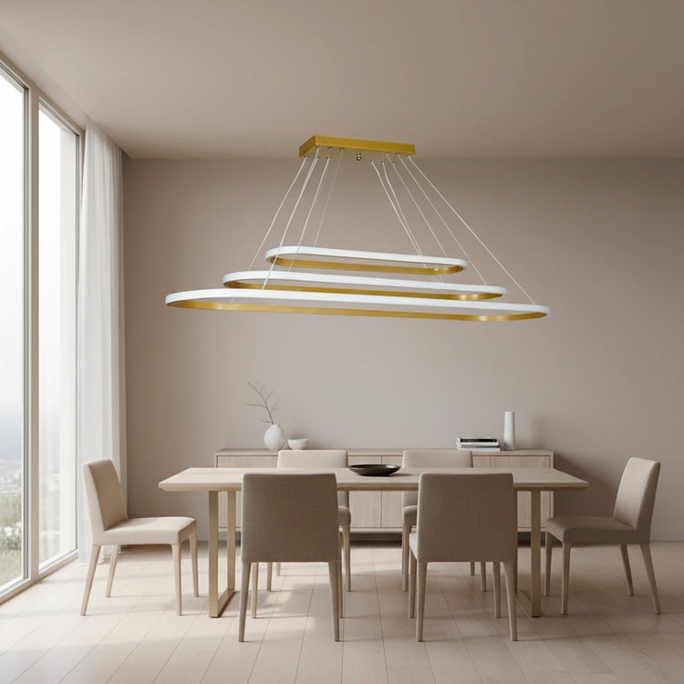 لوستر مدرن نورازمامدل ست بیضی یکی از جدید ترین لوستر های موجود در بین تنوع کالایی این شرکت میباشد ، نورازما با استفاده از بهترین متریال توانسته لوستر مدرن مدل ست بیضی را در بازار عرضه کند ، این لوستر با استفاده از لامپ های مدرن اس ام دی توانسته نور دهی بالا و مصرف برق کمی داشته باشد ، همچنین جنس بدنه این محصول از فلز آلومینیوم با رنگ کوره ای استاتیک و بسیار مقاوم میباشد .