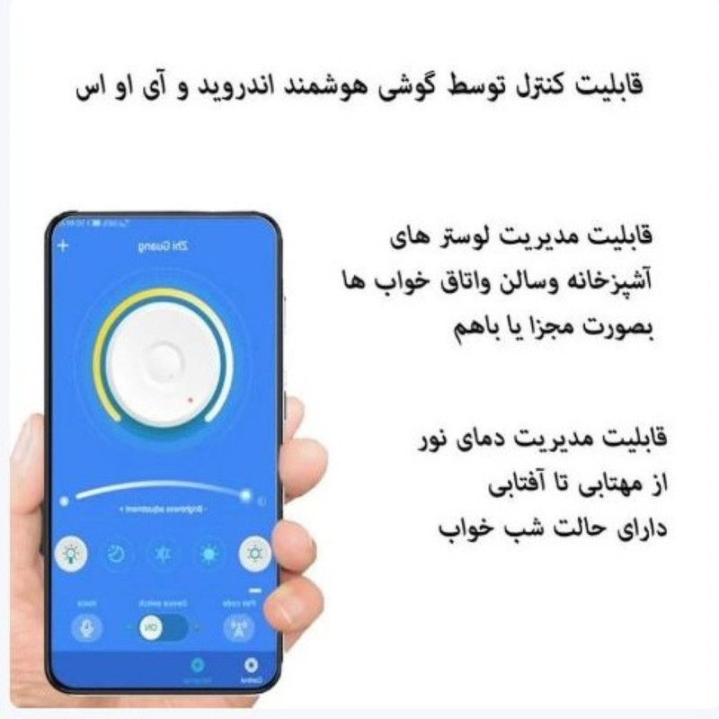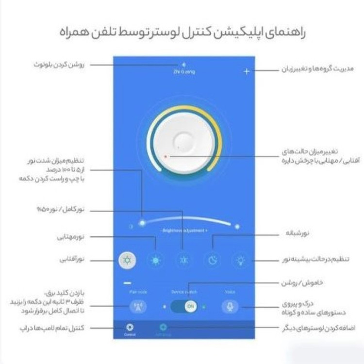 همینطور در لوستر های به همراه کنترل میتوان به اپلیکیشن از طریق بلوتوث متصل شد و از قابلیت های اپ استفاده لازم را بدون در دست داشتن ریموت کنترل داشته باشید