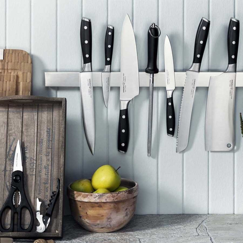 سرویس چاقو آشپزخانه کرکماز مولتی بلید A550 ساخت کشور ترکیه و محصولی زیبا و کاربردی از برند معروف کرکماز است. چاقو از ملزومات هر آشپزخانه ای بوده که با انتخاب چاقو های برند کرکماز کیفیت و زیبایی را یک جا برای آشپزخانه خود به ارمغان می برید و در برش و خرد کردن مواد غذایی مانند سرآشپزهای حرفه ای می توانید عمل کنید. این سرویس حرفه ای شامل ساطور، چاقوی برش نان، چاقوی سرآشپز، چاقوی چند منظوره در سه سایز بزرگ و متوسط و کوچک، ابزار تیز کننده، قیچی و پایه نگهدارنده است. جنس پایه نگهدارنده از چوب مقاوم در برابر رطوبت ساخته شده که بر ظاهر زیبای سرویس می افزاید.