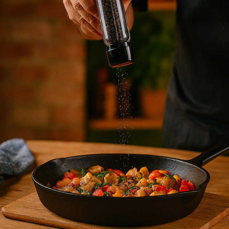 محصول فوق ساخته شده از مواد با کیفیت برای بخش آسیاب و نیزقسمت نگهداری مواد(فلفل ونمک و...) که بطور حتم یکی از بهترین ظروف مد نظر یعنی شیشه می باشد. مواد اصلی ساخته شده آن از شیشه با آسیاب یکپارچه می باشد. مکانیزم فلفل ونمک ساب در بالا قرار دارد که از رسیدن ادویه ها به میز یا قفسه جلوگیری می کند.برای پر کردن مواد کافی است درب فلفل و نمک را بچرخانید تا به راحتی باز و محکم شود و نمک درشت و دانههای فلفل را سریع و راحت پر کنید. از فلفل یا نمک تازه آسیاب شده در هر زمان و هر مکان لذت ببرید.تیم ال وی همیشه در کنار شما خواهد بود