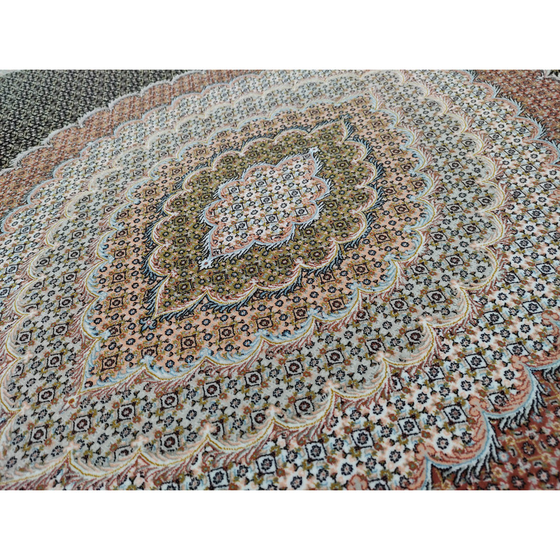 این فرش تولید شده توسط یکی از قدیمیترین و معتبر ترین کارخانجات بافندگی، فرش مشهد میباشد که بصورت 1200شانه تراکم 3600تولید شده است. نقشه این فرش طرح ماهی تبریز است که از طرح های اصیل و کلاسیک میباشد که زیبایی خاصی به محیط منزل میدهد . الیاف بکار رفته در این فرش جزو با دوام ترین و مرغوبترین الیاف میباشد که در اثر مصرف و شستشو هیچگونه تغییر حالتی در آن ایجاد نمیشود .اگر برای منزل خود دنبال فرشی با دوام ،با ظرافت و زیبا هستید این فرش گزینه بسیار مناسب و خوبی است.