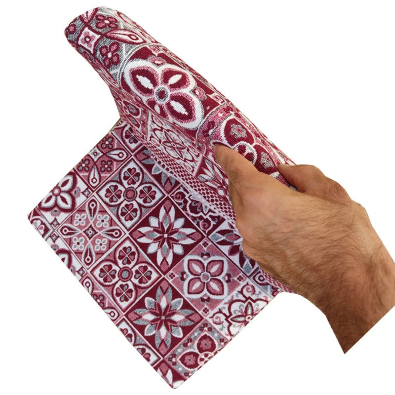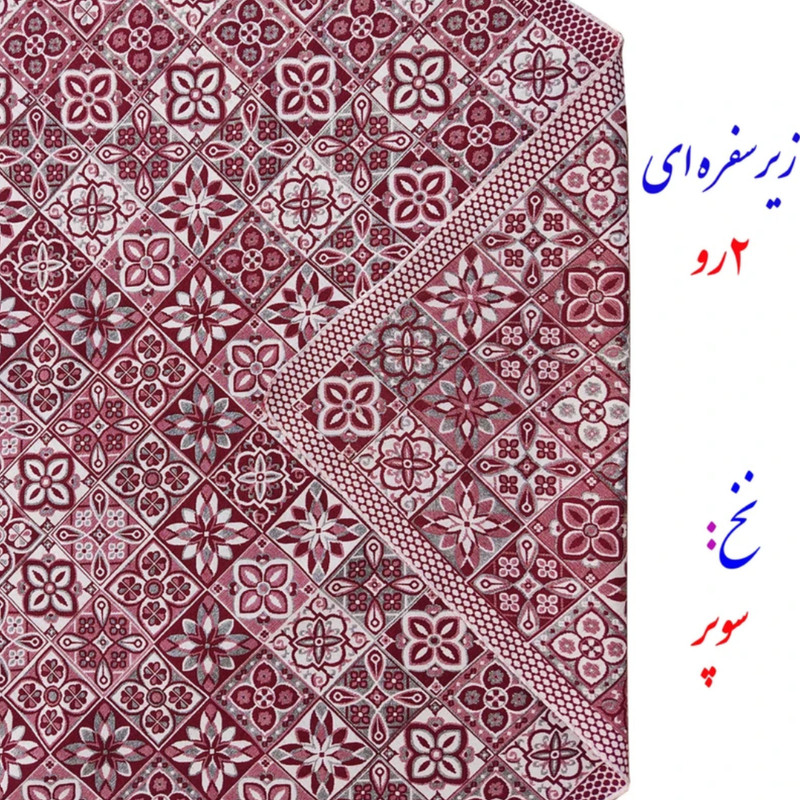 یک روفرشی (زیرسفره ای) سبک با جنس نخ سوپر (غیر مخمل) که ۲ رو بوده و در دو سایز ۳ و ۶ متری تولید می شود. بعد از شستشو این زیرسفره ای لطیف تر میشود. توجه کنید که ممکنه است سایز این زیرسفره ای چند سانت نسبت به سایز اعلام شده کوچیک تر بزرگ تر باشد که از تلرانس ها و خطاهای غیر قابل انکار تولید است.