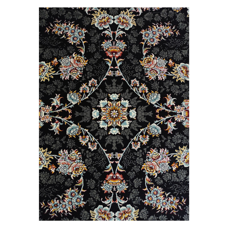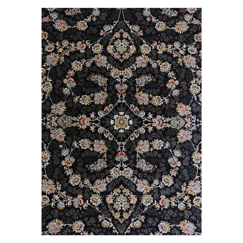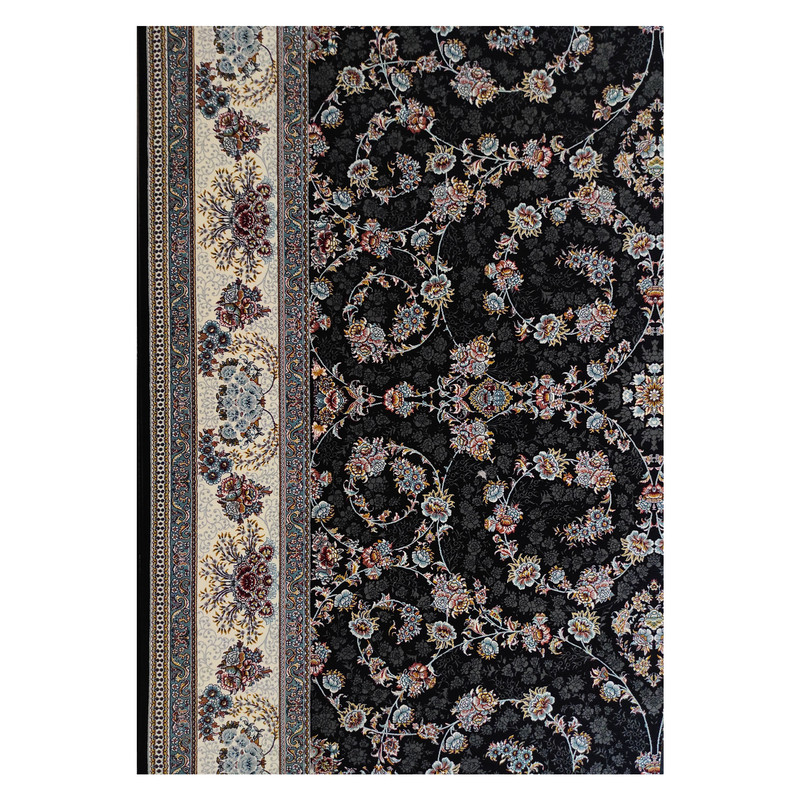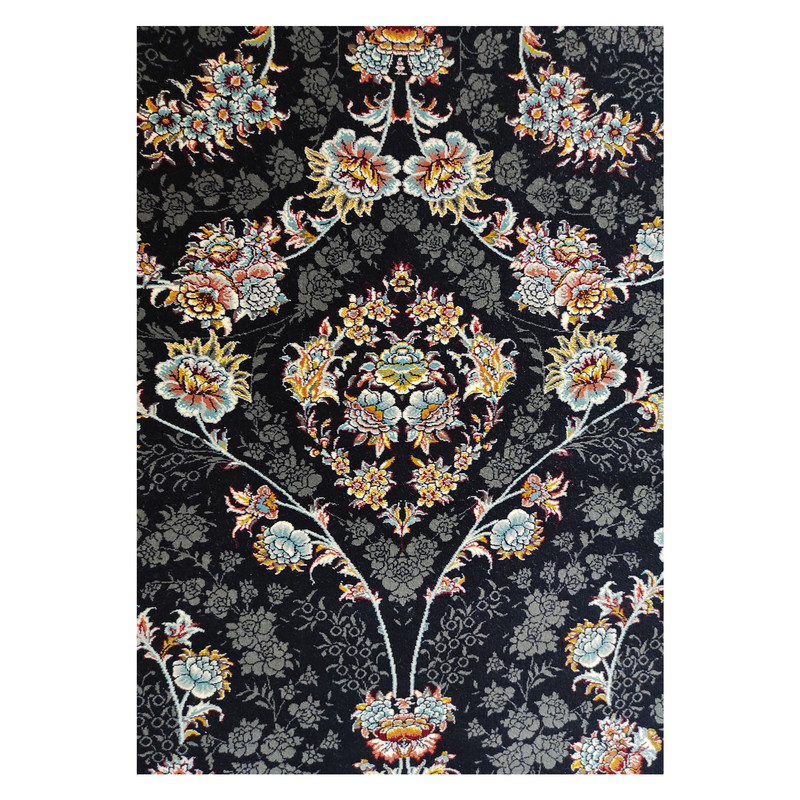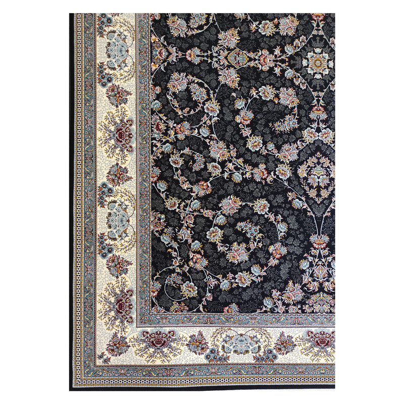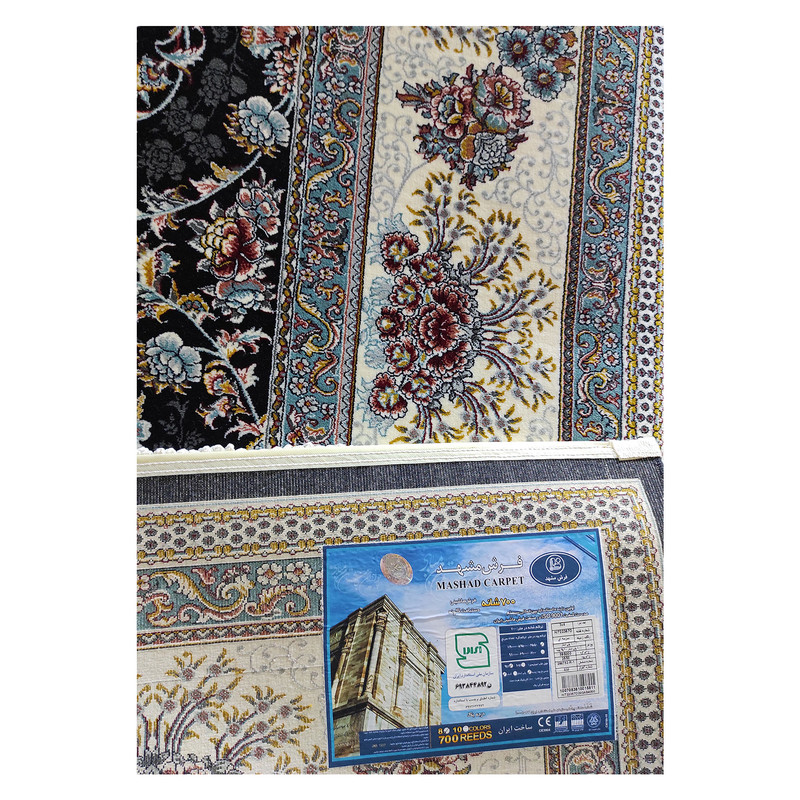فرش ماشینی 700 شانه فرش مشهد زمینه سرمه‌ای حاشیه کرم مدل 722367