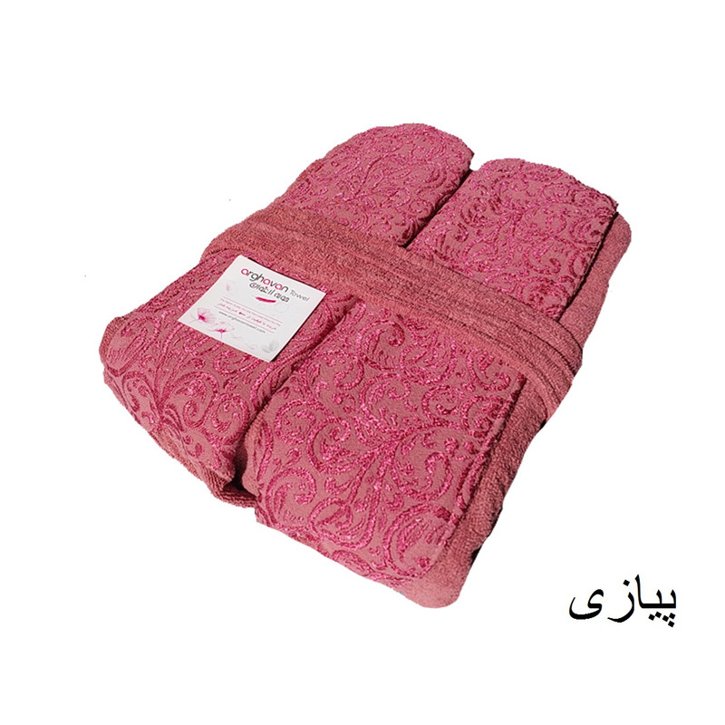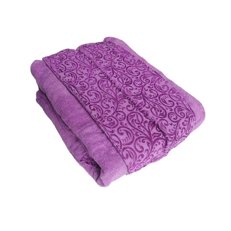 حوله پالتویی ارغوان طرح دیاموند از نخ بسیار مرغوب رینگ تولید شده است . حوله پالتویی فوق دو رو آبگیر بوده و هر دو طرف حوله غیر مخمل می باشد و به همین دلیل جذب آب بسیار بالا دارد . به دلیل مرغوبیت جنس نخ به کار رفته در تولید حوله نرمیت حوله پالتویی فوق کاملا مناسب می باشد. رنگ حوله پالتویی فوق ثابت بوده و در طی شستشو رنگ پس نمی دهد ولی شستشو می بایست طبق دستورالعمل قید شده در کارت شستشوی نصب بر روی حوله انجام شود.سایز حوله فوق 125 بوده که برای افراد با قد 170 تا 185 سانتیمتر و وزن 70 تا 110 کیلو گرم مناسب می باشد.