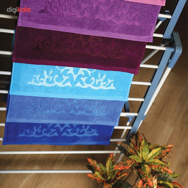 بعد از شستن دست و صورت در سرویس بهداشتی یا هنگام کار کردن در آشپزخانه باید از دستمال یا حولهای نرم و بهداشتی استفاده کرد تا پوست حساس این قسمتهای بدن دچار آسیبدیدگی نشوند. حوله دستی «Azarris Tabriz» (آذرریس تبریز) یکی از بهترین محصولات موجود است که از الیاف طبیعی پنبه ساخته شده است و لطافت و نرمی بسیار خوبی دارد؛ بنابراین هنگام استفاده از آن، پوستتان آزرده نخواهد شد. پنبه علاوه بر لطافت، در مقایسه با برخی الیاف مصنوعی باعث بروز حساسیت یا آلرژی برای افراد مختلف نمیشود. این حولهی کاربردی و زیبا بهصورت دو رو آبگیر طراحی شده است تا با قدرت و سرعت بیشتری آب و رطوبت موجود روی پوست بدن را به خود جذب کند. با آویز کردن حوله در نزدیکی سینک آشپزخانه، بعد از شستن ظروف بهراحتی دستهایتان را خشک خواهید کرد. حاشیهی این مدل با طرحی زیبا تزیین شده است تا هنگام قرار دادنش در معرض دید، ظاهری مناسب داشته باشد؛ بهاینترتیب اگر برای تکمیل لوازم سرویس بهداشتی یا آشپزخانهی خود بهدنبال یک یا چند حولهی زیبا و باکیفیت هستید، مدل «رویال» گزینهای عالی برای شماست.