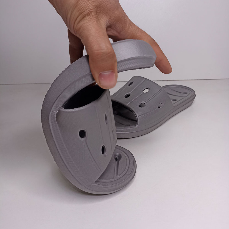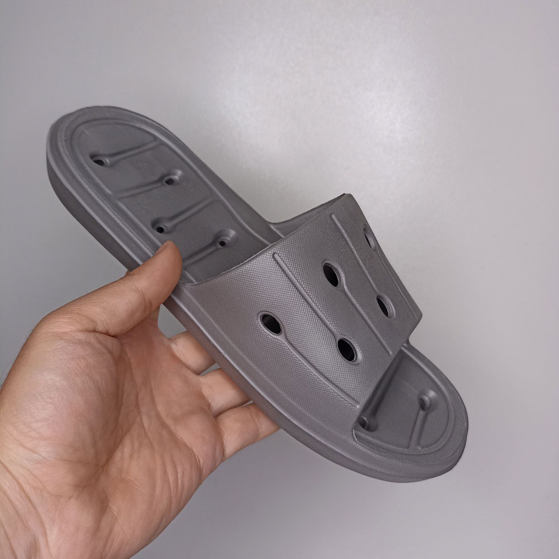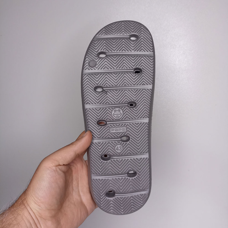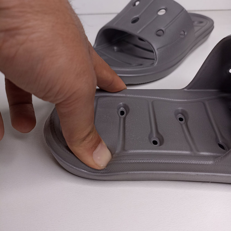 در قسمت کف و روی محصول سوراخ های در نظر گرفته شده که هم جنبه تزئینی و هم جنبه کاربردی دارد چرا که این سوراخ ها باعث تخلیه سریعتر آب از قسمت زیر دمپایی و همچنین باعث گردش هوا میشود.