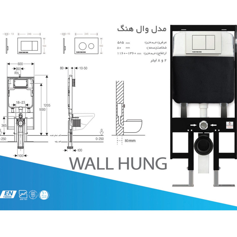 فلاش تانک توکار در حقیقت همان سیفون های رایجی است که در اغلب سرویس های بهداشتی مورد استفاده قرار می گیرد ولی فلاش تانک های توکار مزیتی که دارد، این است که به صورت مخفی و در پشت دیوار تعبیه شده به همین دلیل این نوع فلاش تانک به وسیله یک پنل کلید کوچک که بر روی دیوار نصب می گردد، قابل کنترل و هدایت است. این نوع فلاش تانک ها چون در داخل دیوار نصب می شوند فضای داخل سرویس بهداشتی را اشغال نمی کنند به همین دلیل امروزه با پیشرفت آپارتمان نشینی و عدم فضای کافی برای سرویس بهداشتی، کاربرد فلاش تانک توکار توسعه بیشتری نسبت به سایر فلاش تانک ها داشته است.فلاش تانک توکار ایران مدل وال هنگ محصولی از کارخانه فلاش تانک ایران میباشد که در راستای مرتفع کردن این علاقه و نیاز تولید میگردد. فلاش تانک ایران با ضخامت ۸ سانتی متری از پلاستیک درجه یک غیر بازیافتی تولید میگردد و از مکانیزم تخلیه با طراحی سویسی بهره میبرد. کلید این مدل فلاش تانک توکار در 2 طرح چهارگوش و دایره ای و با تنوع 10 رنگ می باشد.استراکچر بکار رفته از پروفیل سنگین با ضخامت بالا و رنگ کوره ای تولید شده که در برابر زنگ زدگی و خمیدگی بسیار مقاوم هست.مکانیزم تخلیه کاملا بیصدا، پرشدن مخزن با هر فشار آب حتی فشار آب کمتر از ۰٫۵ بار، گذراندن ۵۰۰ هزار بار تست به صورت موفقیت آمیز و استفاده از مواد اولیه درجه یک در ساخت این محصول از دیگر نقات قوت آن میباشد.
