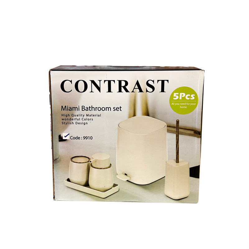 ست سرویس بهداشتی 5 پارچه کنتراست مدل میامی طرح چوب کد RM9910