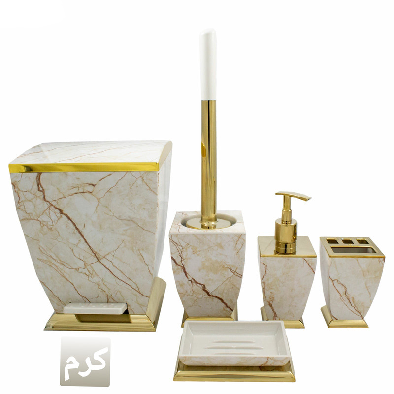 توضیحات ابعادسطل : 20x20x27 سانتیمتر فرچه: 8x8x36 سانتیمتر جاصابونی: 3x9x14 سانتیمتر جامسواکی: 8x8x12 سانتیمتر جامایعی: 8x8x20 سانتیمتر