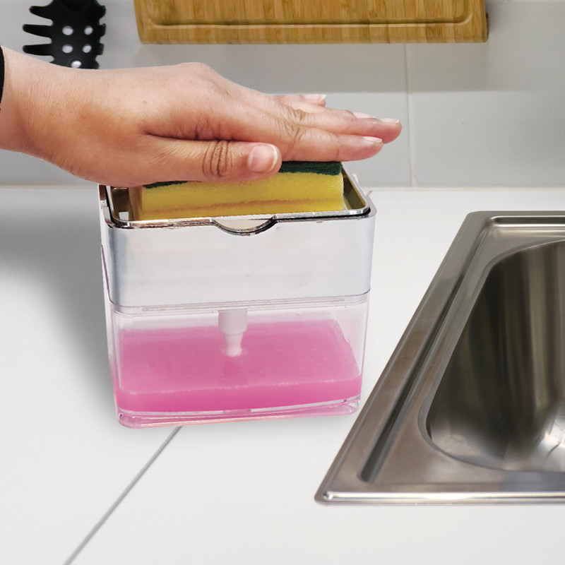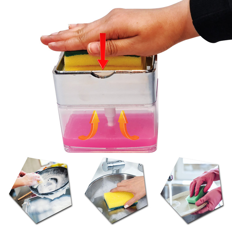 برای استفاده کافیست با یک فشار ساده اسفنج روی صفحه بالایی مقدار مناسبی از مایع ظرفشویی را روی اسفنج توزیع کرده و ظروف خود را شستشو دهید.