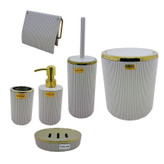سایر توضیحات: سطل زباله به ارتفاع 24 سانت قطر 21 برس ارتفاع 24 سانت قطر ۱۰ محفظه مسواک ارتفاع ۱۳ قطر ۸ جای صابونی طول ۱۴ سانت عرض ۱۱ سانت و ارتفاع ۴ سانت جای مایع ارتفاع ۱۹ قطر ۸ سانت