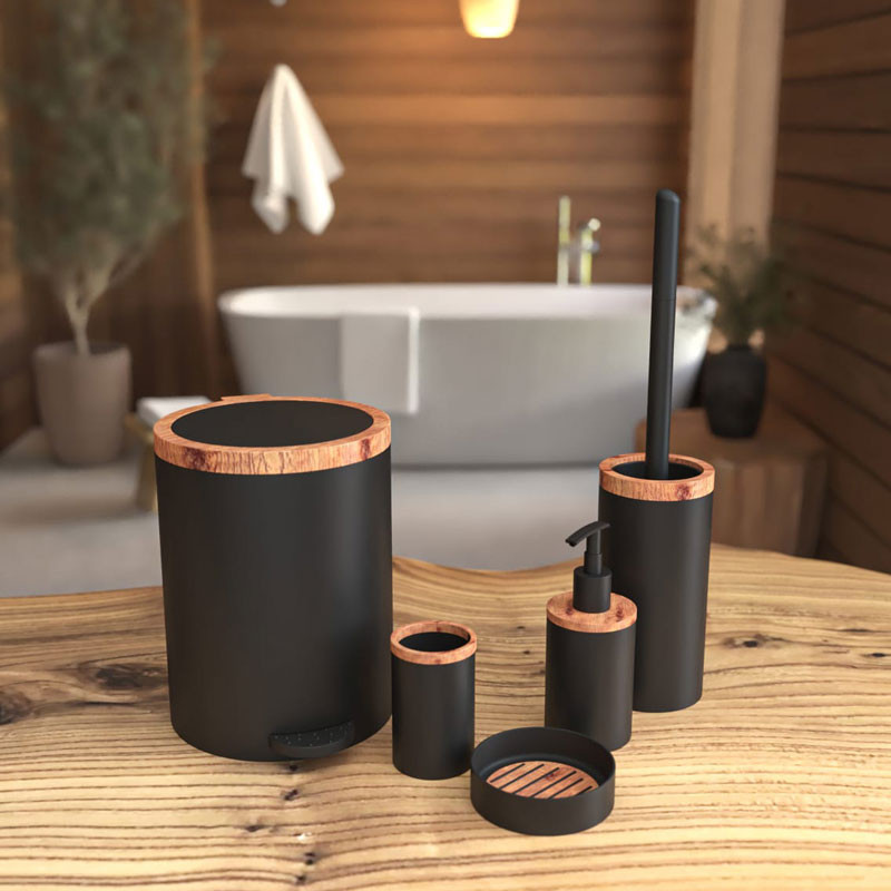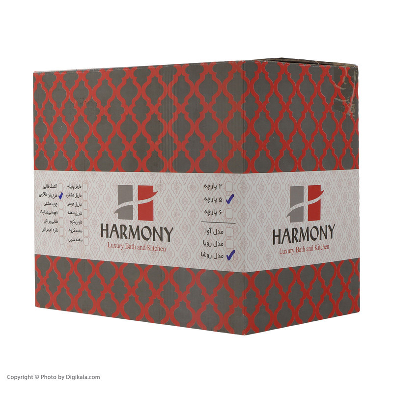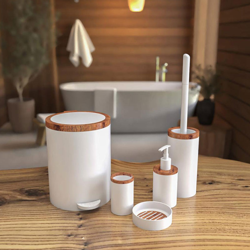 سایر توضیحات : سرویس 5 پارچه روشا طرح چوب هارمونی، از جنس پلاستیک است. این محصول شامل سطل، فرچه، جا مایع، جا صابون و جا مسواک می باشد. درب سطل این ست 2 حالته بوده به صورت پدالی و بادبزنی باز می شود.