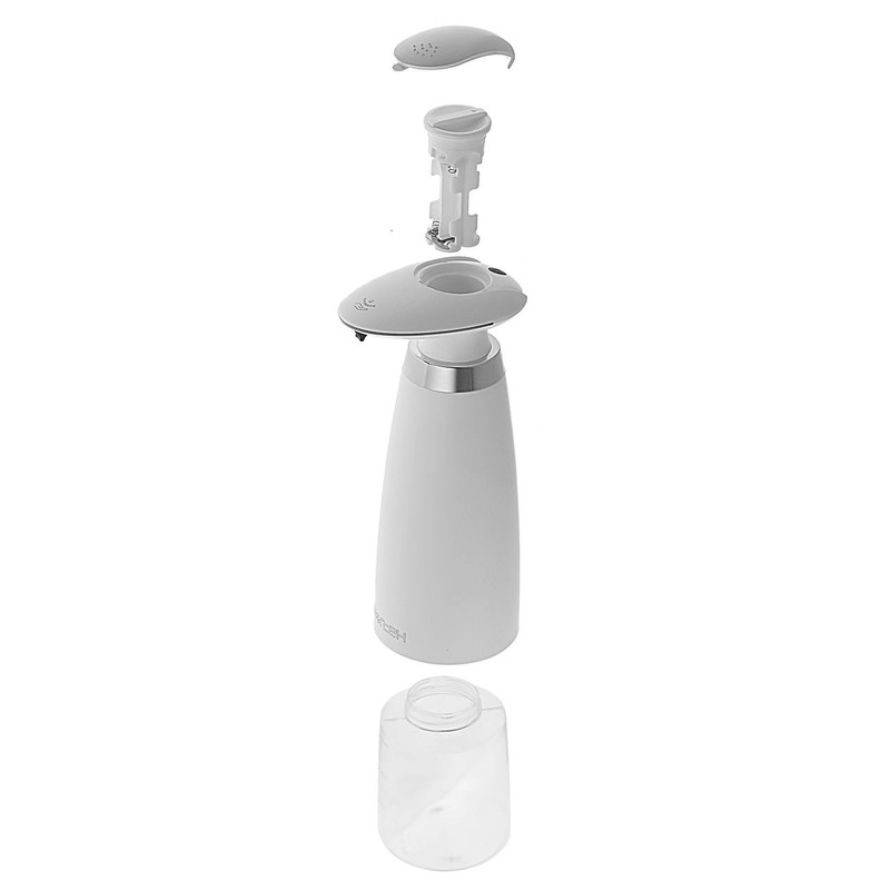 این محصول با 4 باطری قلمی کار می کند و با چراغ چشمک زن میزان شارژ باقی مانده باطری را نشان می دهد. همچنین از قابلیت های منحصر بفرد این دستگاه تنظیم میزان مایع دستشویی خروجی از نازل آن در سه حالت1.5 ، 3 و 4.5 میلی لیتر می باشد. باز و بسته شدن راحت و شارژ بسیار راحت مجدد باطری و مایع دستشویی نیز از ویژگی های این محصول می باشد.