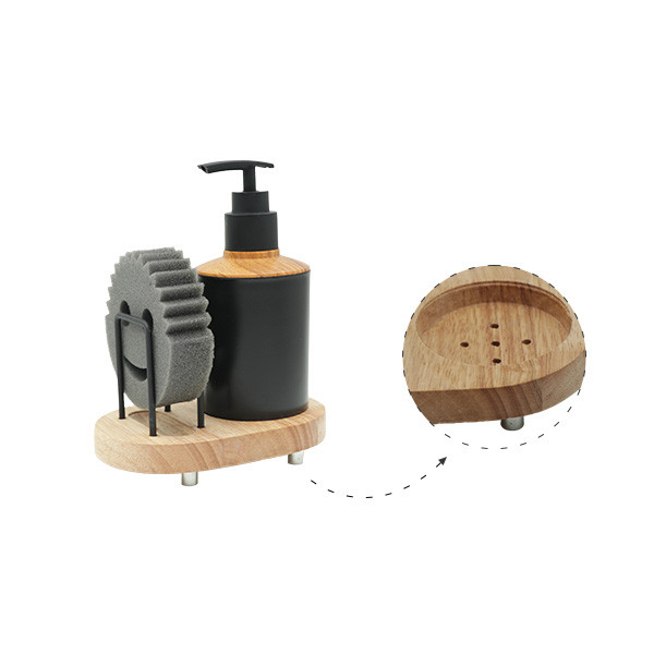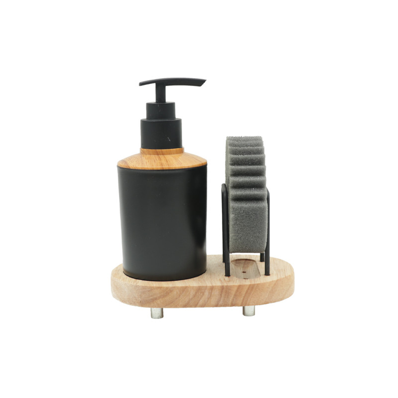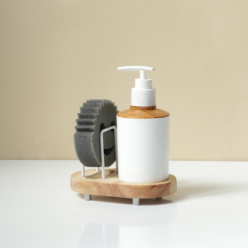 این ست شامل یک پمپ جا مایع باکیفیت، اسفنج شستشو استند چوبی با پایههای فلزی مقاوم است که ظاهری زیبا و کاربردی ایجاد میکند.