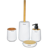 سایر توضیحات: محصول کشور ترکیه -مجموعه 4 پارچه - شستشوی تمیز و آسان - مقاوم در برابر شوینده های اسیدی و شیمیایی - بسیار مقاوم وزیبا - جاصابونی : ۱۱x۱۱x۳ سانتی متر - جامایع : 8x8x16 سانتی متر - جامسواکی : 8x8x10 سانتی متر - فرچه : 10x10x35سانتی متر