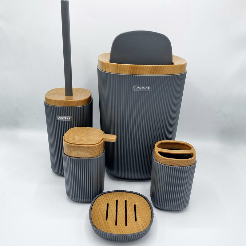ست سرویس بهداشتی پنج پارچه کنتراست مدل روما 7900 طرح چوب