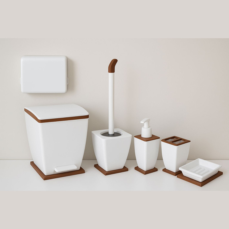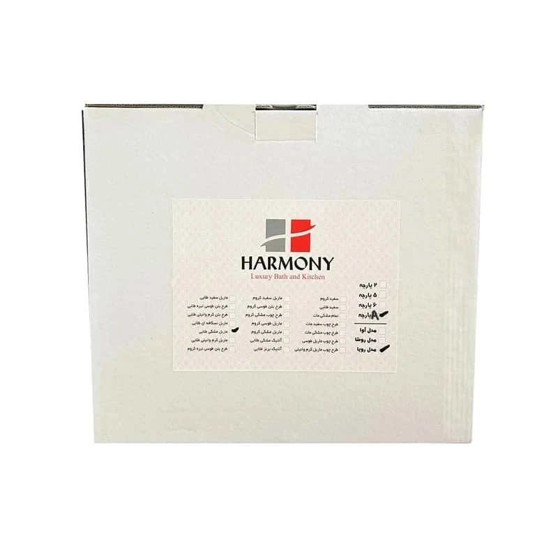 این مدل ست سرویس بهداشتی برند هارمونی به علت طراحی و ساختار ساده آن بسیار زیبایی منحصر به فردی خواهد داشت این مدل در دو رنگ سفید مات و مشکی مات طراحی و تولید شده است. اکثر نمونه های موجود در بازار از جامسواکی های کوچک و کم کاربردی برخوردار هستند ولی این مدل از یک جامسواکی زیبا و جادار برخوردار است. سطل زباله از یک سطل داخلی هم برخوردار است.