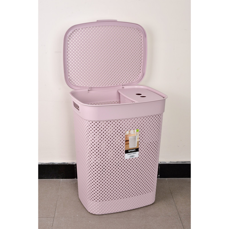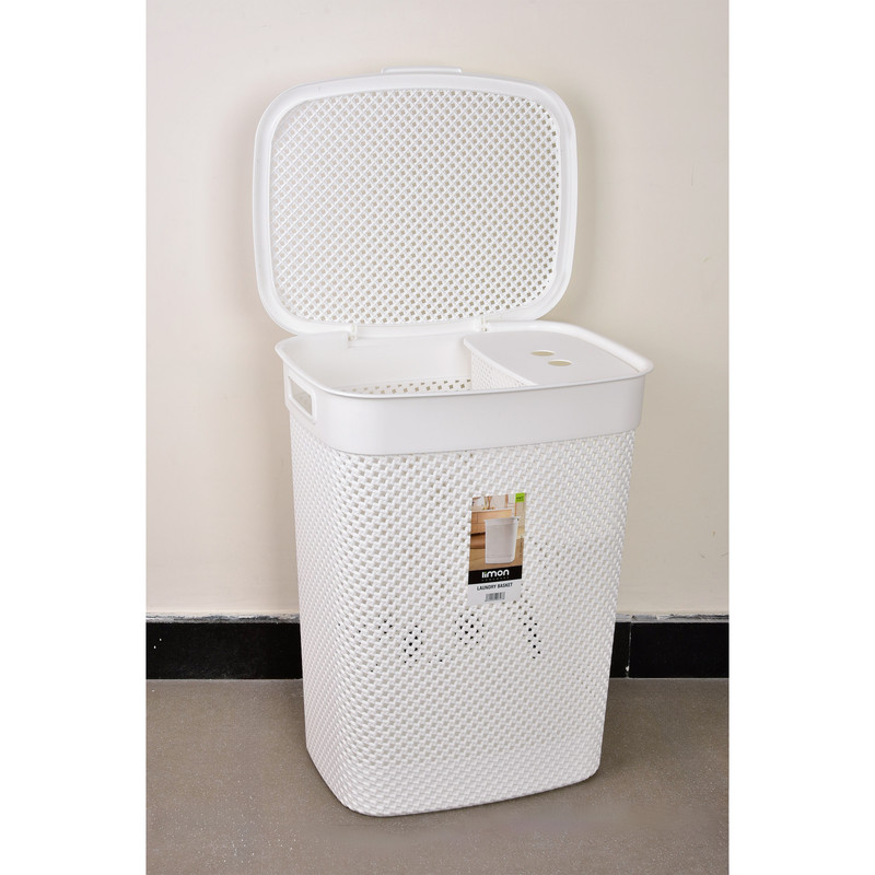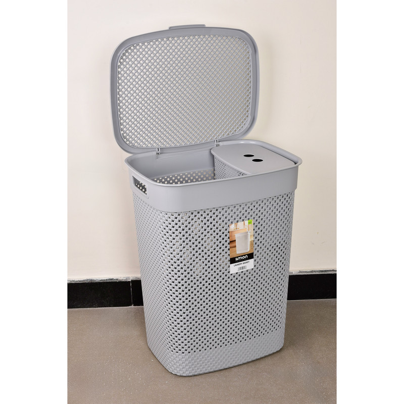 سبد رخت دربدار بلند طرح بافت لیمون ساخته شده از پلاستیک و دارای طرح زیبای بامبو حصیری است. این سبد وسیله ای مناسب و کاربردی برای جمع آوری لباس های کثیف می باشد. این سبد رخت دربدار طرح بامبو در رنگ های زیبا و متنوع مناسب هر سلیقه ای موجود است. داخل این سبد رخت ، سبدی کوچک برای لباس های کوچک تر تعبیه شده است.
