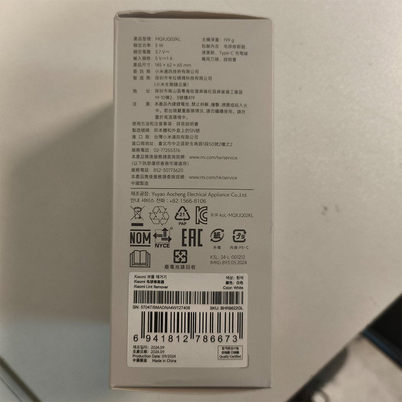 پرزگیر لباس شیائومی مدل MQXJQ01KL یک دستگاه کارآمد برای حذف پرز و کرک از انواع پارچهها است. این دستگاه با طراحی جمعوجور و وزن سبک ۲۱۳ گرم، استفاده آسانی دارد و به راحتی در دست جا میشود. بدنه آن از پلاستیک ABS مقاوم ساخته شده و با رنگ سفید مات، ظاهری زیبا و مدرن دارد.