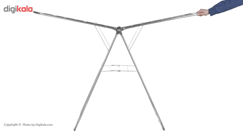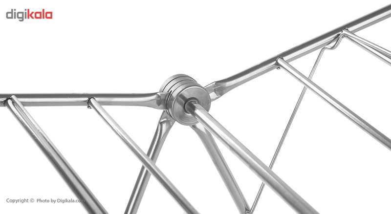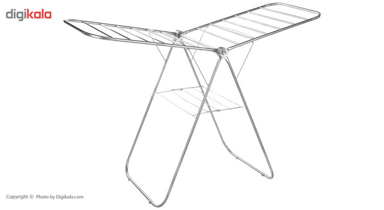 امروزه با توجه به فضای محدود آپارتمانها و دسترسینداشتن به محیطهایی باز مانند پشتبام یا تراس، نصب بند و آویزانکردن لباسها روی آن، کاری بسیار مشکل و گاهی غیرممکن است؛ بنابراین باید از بند رختی تاشو استفاده کرد تا بعد از خشکشدن لباسها بتوان آن را بهراحتی جمع کرد و در گوشهای از آشپزخانه یا تراس قرار داد. بند رخت کد «001» دارای 12 میلهی بلند و 5 میلهی کوتاه است. ابعاد این بند رخت در حالت باز شامل طول 140، عرض 55 و ارتفاع 88 سانتیمتر بوده و وزن نسبتا سنگینی دارد. جنس بدنهی این بند رخت فلزی بوده که در برابر رطوبت و نور خورشید از مقاومت خوبی برخوردار است. در پایههای این مدل، قطعههایی پلاستیکی تعبیه شده است تا از لیزخوردن آن روی سطوح مختلف جلوگیری کند. با این قطعات پلاستیکی، روی سرامیک و پارکت خطوخشی ایجاد نمیشود.