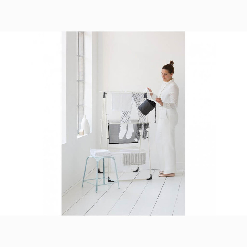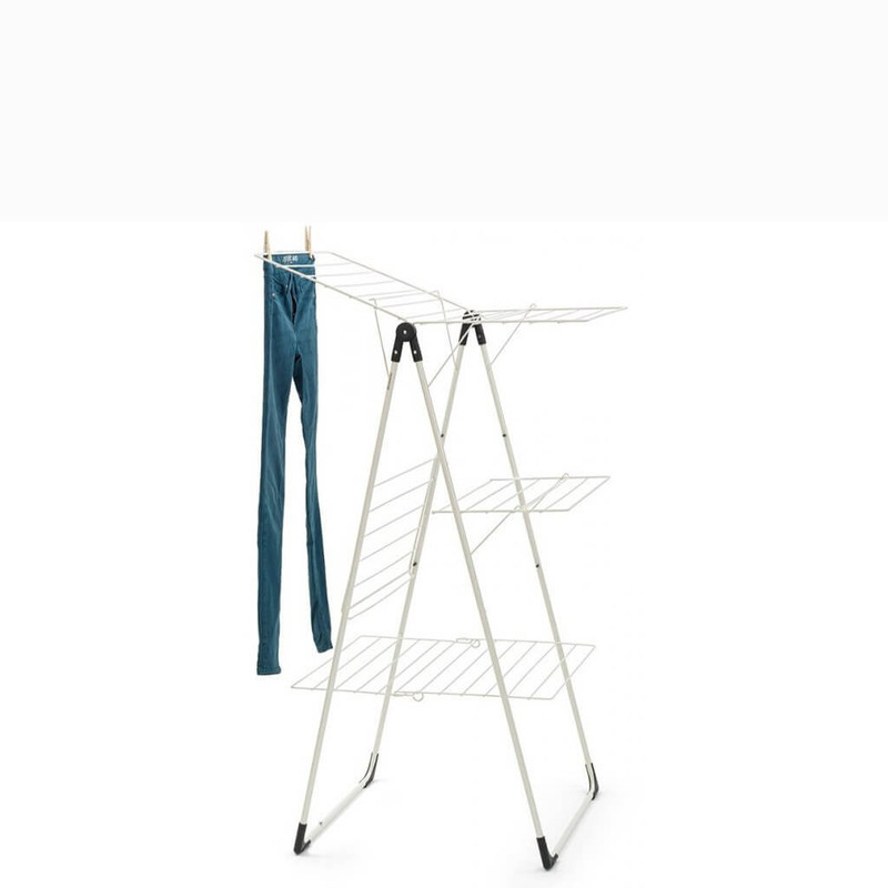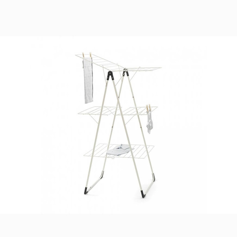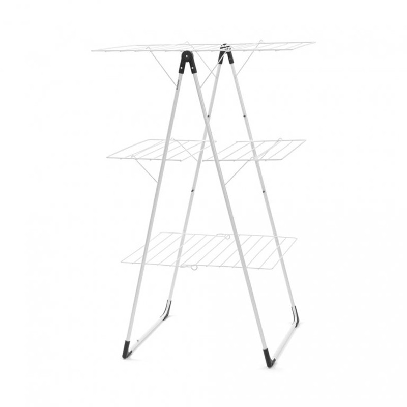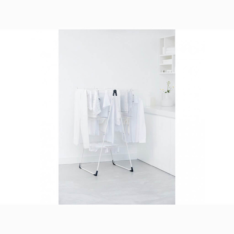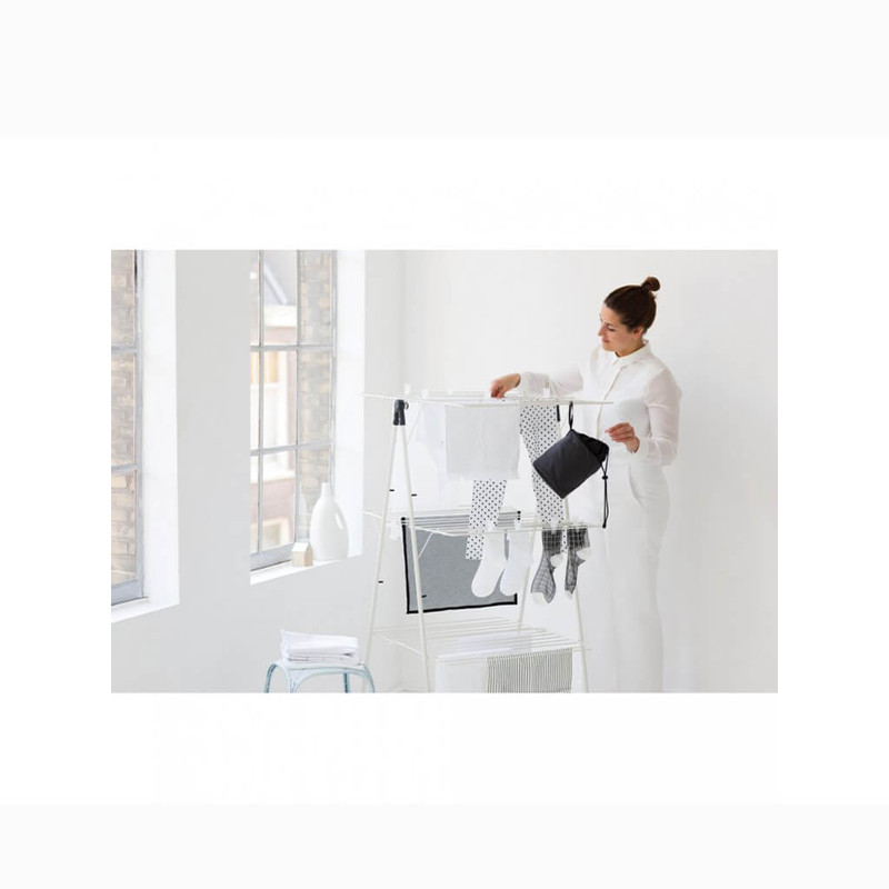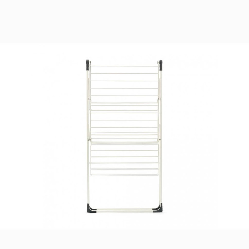 شما میتوانید با این مدل بند رخت برابانتیا در فضا و زمان صرفه جویی کنید و لباس های خود را به راحتی و به صورت طبیعی خشک نمایید . این مدل بند رخت بارابانتبا Brabantia با دوام و طراحی زیبا می باشد . طول کل خشک کن لباس آن 23 متر می باشد و دیگر نگران فضا جهت شستشوی لباس خود نمی باشید . از مزایای بیشتر آن می توان به پایه ضد لغزش و مناسب برای لباس های کوچک و بزرگ اشاره کرد و همچنین حمل و نقل و جابه جایی آن بسیار آسان می باشد که شما میتواند حتی با لباس های پهن شده روی آن به راحتی جابه جا کنید . با کمک این بند رخت می توانید دو بار پیاپی لباس های خود را در آن آویزان کرده و به راحتی لباس های خود را خشک نمایید . ارتفاع قابل تنظیم می باشد که به راحتی لباس های کوچک و بزرگ در آن جای داده می شود . مزیت اصلی این بندرخت مجهز به قفل کودک می باشد تا از تا خوردن ناگهانی جلو گیری کند .