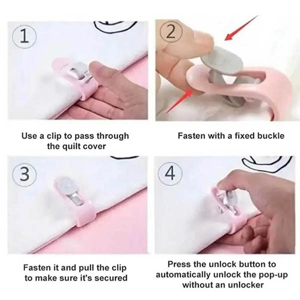 یکی از دغدغه های کدبانوهای با سلیقه ، تثبیت نمودن و صاف کردن ملافه تختخواب هاست که استفاده از این گیره ها با نحوه بکارگیری بسیار آسان این مشکل را بسادگی حل می نماید. یکبار مصرف نبودن گیره ها و همچنین عدم استفاده از سوزن یا لبه های نوک تیز که موجب پارگی و از بین رفتن ملحفه خواهد شد ، از ویژگی های این محصول است.