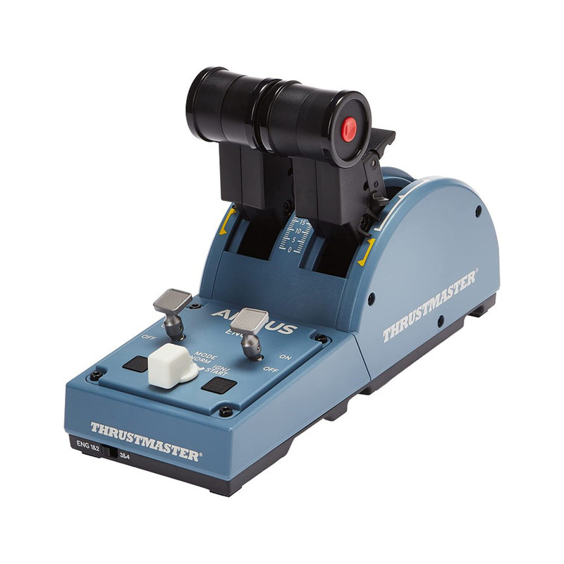 پک Officer دسته کنترل Thrustmaster TCA، نمونه بازسازی شده دسته کنترل و تراتل هواپیمای ایرباس است که برای سیستمهای شبیهساز طراحی شده است.این دسته کنترل با مقیاس ۱:۱ از روی سیستم هدایت هواپیمای ایرباس ساخته شده است و هدایت این هواپیما را در شبیهساز مورد نظر شما بازسازی میکند.این دسته کنترل دارای قابلیت شخصیسازی است و میتوانید دکمههای ماژولار آن را برای نقش سرخلبان، کمک خلبان یا پرواز تک نفره تغییر دهید.این دسته کنترل دارای یک تراتل با قابلیت نیروی پیشران معکوس است تا هر مانور هوایی را که مدنظر دارید اجرا کنید و به راحتی فرود بیایید.استیک این دسته کنترل به عنوان سکان نیز قابل استفاده است و میتوانید آن را در شبیهساز، به عنوان سکان بچرخانید و مورد استفاده قرار دهید. این سکان قابل قفل شدن است تا بتوانید هواپیماهای دارای این نوع سکانها را نیز هدایت کنید.کوادران همراه این دسته کنترل، دارای هشت دکمه فیزیکی و هشت دکمه مجازی روی اهرمهای پیشران است که عینا از روی کوادران هواپیمای ایرباس A320neo ساخته شده است. با این کوادران به شکلی دقیق میتوانید هدایت یک هواپیمای مسافربری ایرباس را برای خود شبیهسازی کنید.این کوادران دارای دو اهرم نیروی پیشران مجزا است که به خوبی میتواند کنترل هواپیماهای چهار موتور از جمله ایرباس A380 را شبیهسازی کند. همچنین میتوانید حرکت این اهرمهای پیشران را با هم قفل کنید و هواپیماهای تک موتور را نیز هدایت کنید.این کودران همچنین دارای دو اهرم پیشران معکوس است تا بتوانید مکانیزم نیروی پیشران معکوس انواع هواپیماها را عینا شبیهسازی کنید.این دسته کنترل و کوادران اگرچه نسخههای شبیهسازی شده هواپیمای ایرباس هستند، اما به دلیل قابلیتهای شخصی سازی متعددی که دارند، برای شبیهسازی انواع هواپیماهای مختلف قابل استفاده هستند.