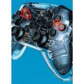 12 دکمه بر روی این دسته قرار گرفته که می توانید هر یک را به یک عمل خاص اختصاص دهید. اگر دکمه های مربوط به حرکت را در نظر نگیریم، 8 دکمه قابلیت دریافت تنظیمات دلخواه شما را خواهند داشت. همچنین علاوه بر دکمه ها، دو جوی استیک که قابلیت چرخش 360 درجه دارند هم وجود دارد. در مرکز و بین جوی استیک 4 چراغ LED قرار گرفته است که میزان تقریبی شارژ باتری دسته را نشان می دهد.