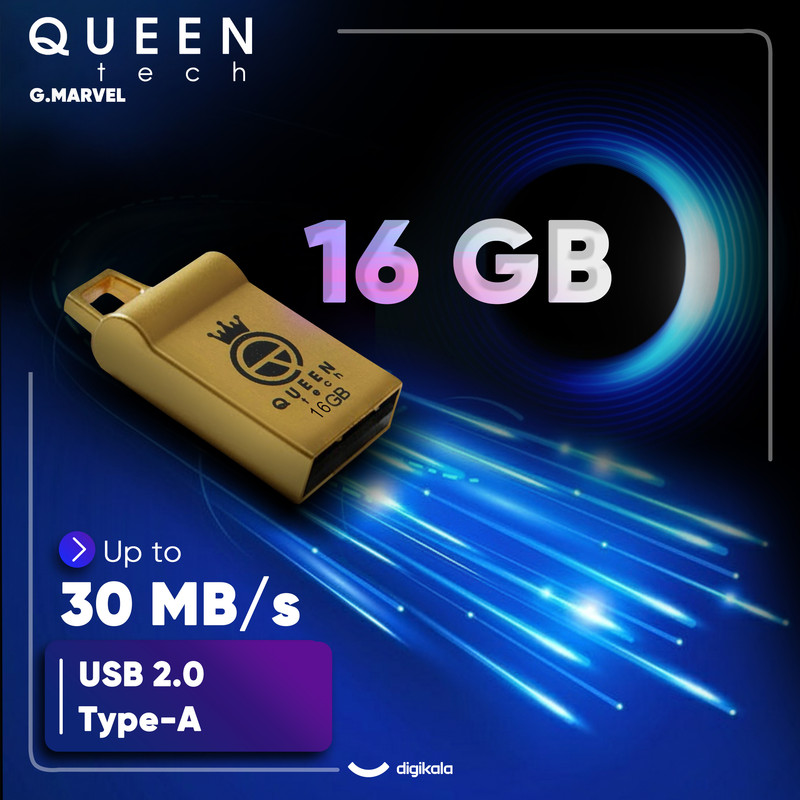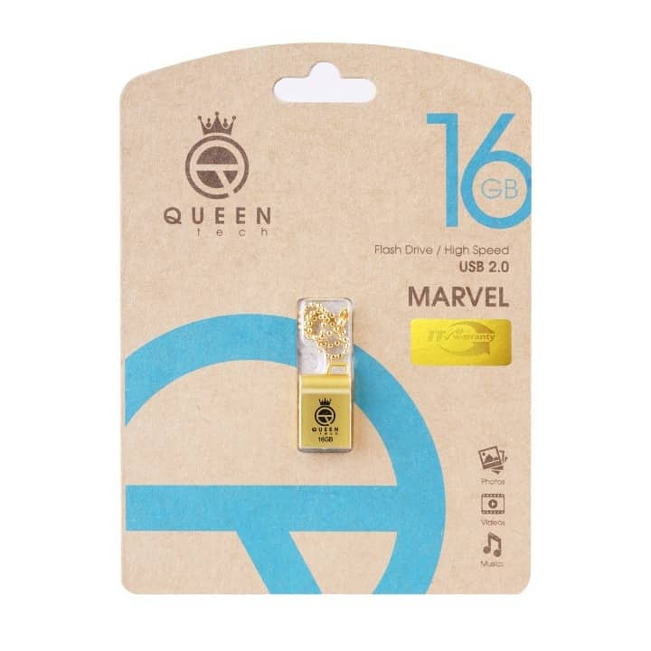 فلش مموری کوئین تک مدل MARVEL ظرفیت 16 گیگابایت زیبا و مقاوم است هنگامی که به پورت USB متصل میگردد تنها مقدار اندکی از طول آن در دید قرار میگیرد، این جاست که شما قادرید لپتاپ یا تبلت خود را بدون این که نیاز باشد فلش مموری را جدا نمایید، در داخل کیفتان قرار دهید و به راحتی آنرا با خود حمل کنید. به دلیل بهرهبری از تکنولوژی COB ضد آب، ضد شوک و لرزش و مقاوم در برابر گرد و غبار است. فلش مموری کوئین تک مدل MARVEL به شکلی فشرده طراحی شده، که مفهوم زیبایی آن را نشان میدهد.طراحی بدون قاب این فلش مموری بسیار کاربرپسند است.این محصول مجهز به یک زنجیر کارامد است که احتمال گم شدن فلش مموری را کاهش میدهد. برای انتقال اطلاعات از رابط USB 2.0 بهره میبرد و قادر است سرعت مطلوبی به شما ارایه دهد. این محصول با اغلب سیستم عاملها سازگاری دارد و میتوان از آن در هر دستگاه مجهز به پورت USB استفاده کرد. درنهایت اگر به دنبال یک حافظهی امن و مطمئن برای انتقال اطلاعات با ارزش خود هستید فلش مموری کوئین تک مدل MARVEL انتخاب مناسبی است.